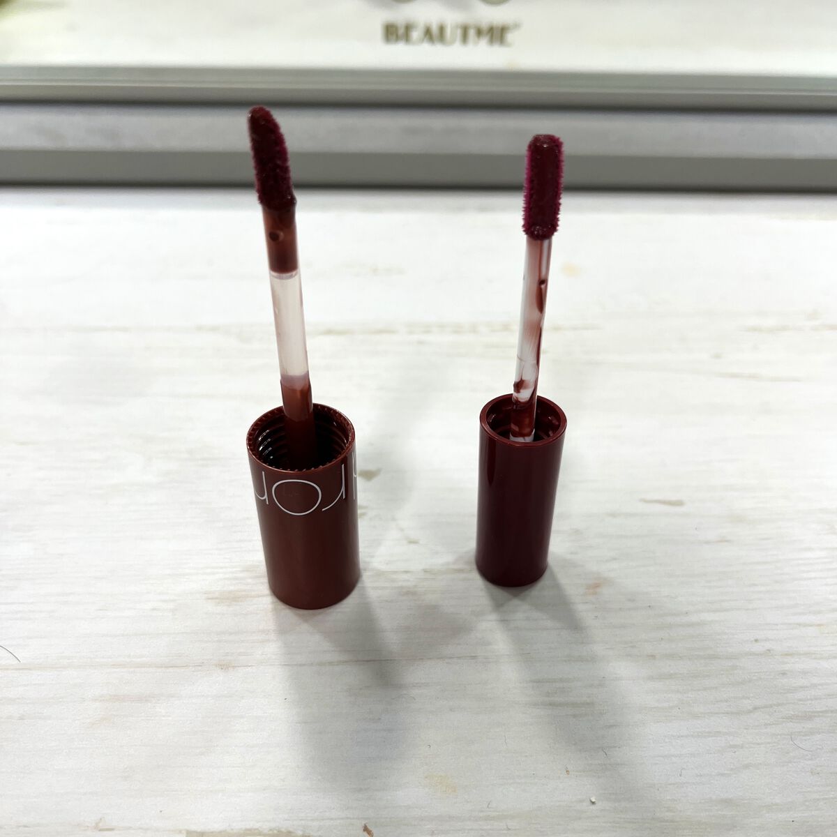 ・ティント・安い・レッドブラウン系・ツヤ系リップ・落ち具合一緒・塗り直し必要 ・rom&ndの方がサイズが大きい・ティッシュオフするとrom&ndはレッド寄りに、CEZANNEはオレンジ寄りになる・少しCEZANNEの方がナチュラルな気がする・値段はCEZANNEの勝ち・rom&ndは匂いがある、CEZANNEはあるっちゃあるけどrom&ndみたいにいい匂いではない