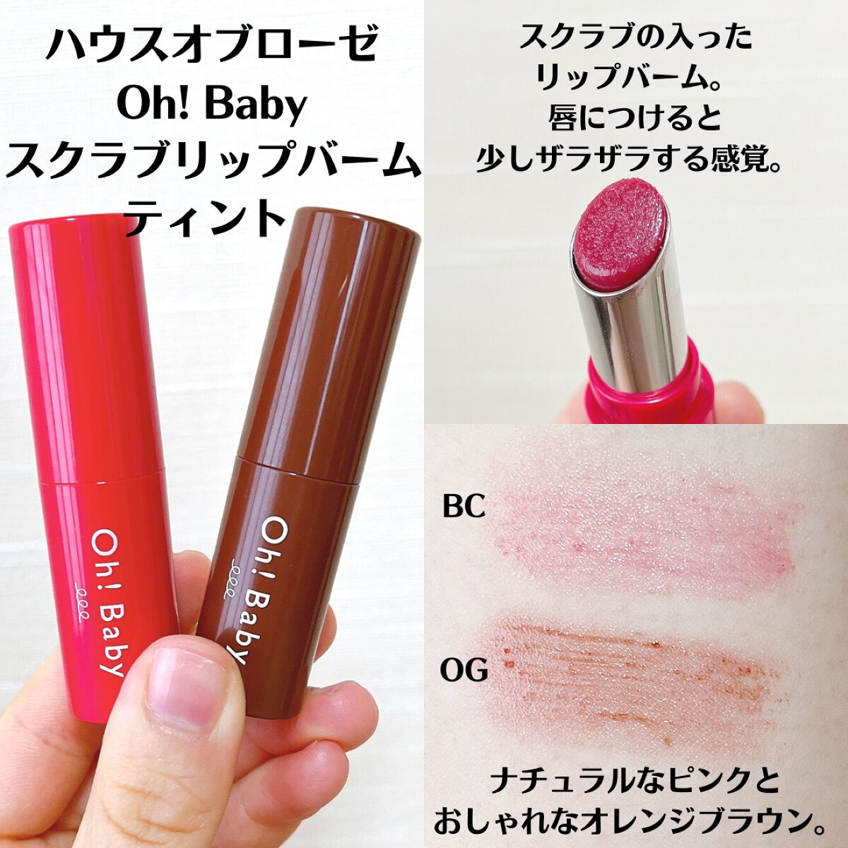 ❤️Oh!Babyスクラブリップバームベリーショコラ❤️角質ケアができるシュガースクラブ入りのリップバームです💄💕スクラブ入りなのでザラザラ感は感じますが塗り心地は良いかと思います😊バームですが発色はよく、保湿力も高いです🙆🏻♀️リップクリ...