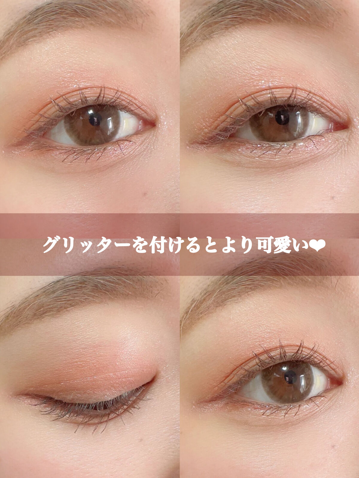 このアイシャドウは発色は薄めだけど その代わりにラメが凄くて!! なのでオレンジメイクしたいけど なかなか挑戦出来ない方とかにも◎ オレンジを単体で塗れば可愛い印象に ブラウンを加えれば大人っぽい印象に とっても可愛いアイシャドウなので 是非チェックしてみてください🍯💗