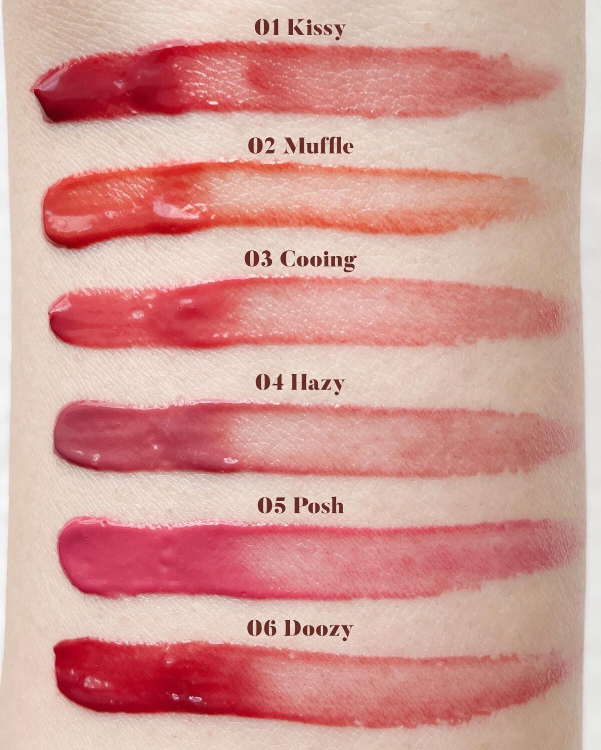 水みたいに軽いツヤツヤな仕上がり。 ベタベタしないし、付けてる感が少ないので快適ですよ✨ 全体的にイエベに寄った色展開です。 もしブルベさんが使うなら03が一番馴染むかな? ウォームスプリングの私は圧倒的に04がお気に入りです〜!! 黄みたっっっぷり🍊 一度ティッシュオフをするとマスクにも付きづらいので是非試してみてください🥰