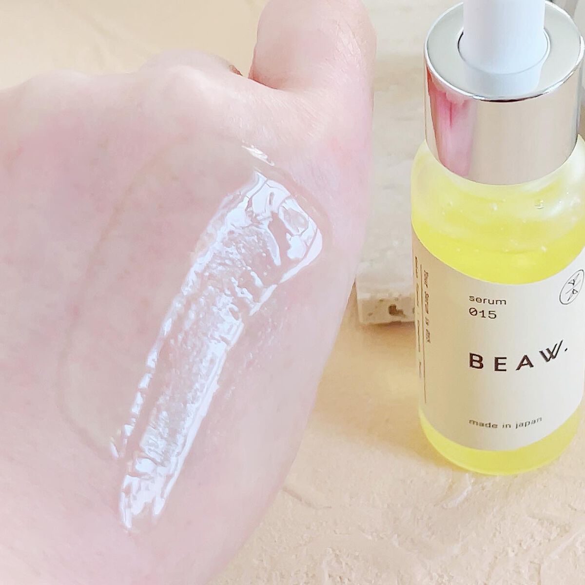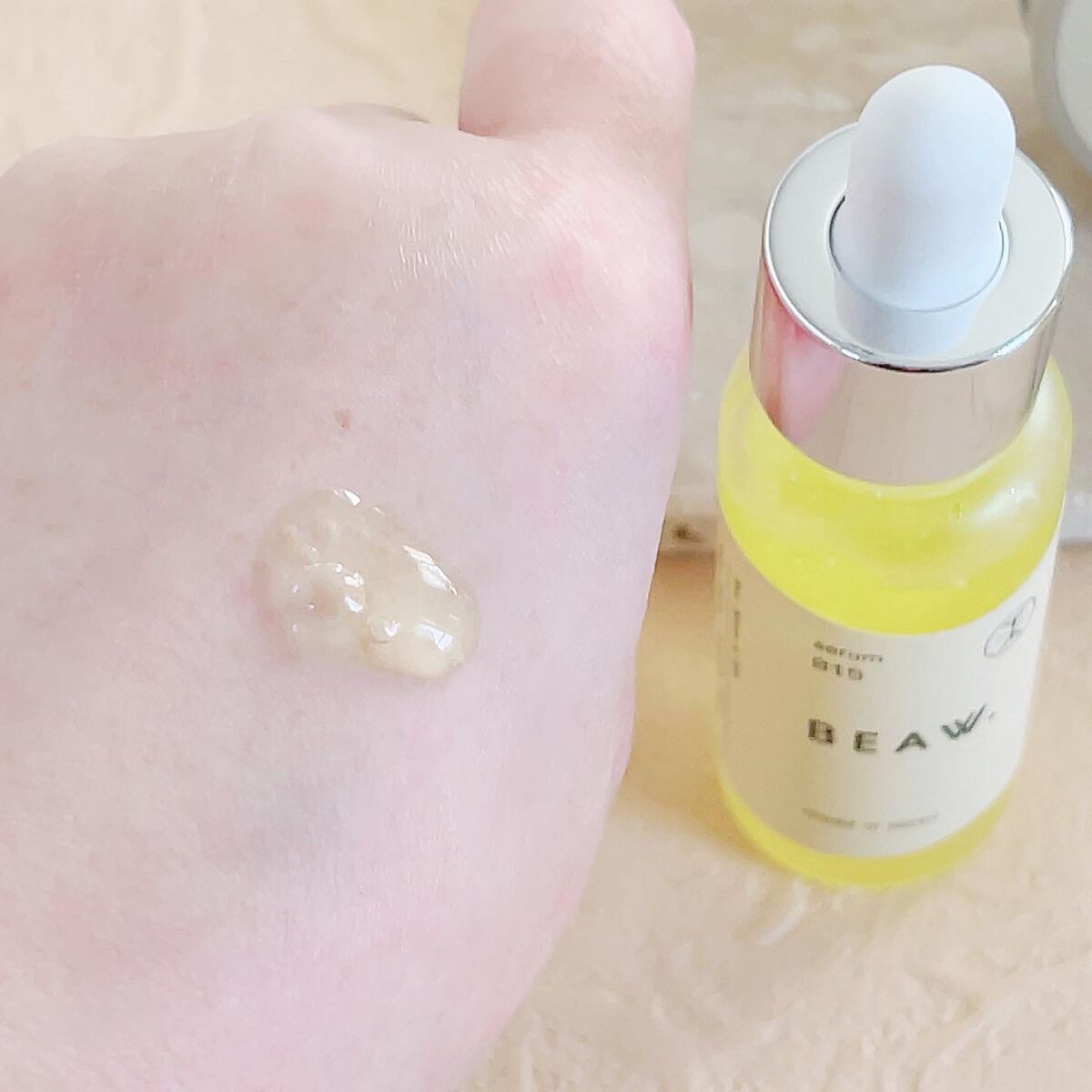 肌に潤いを与え、シミ・そばかすを防いでくもりのない肌へ導く美容液 いちごシロップみたいな見た目が好き、ビタミン12由来の色なんだそう とろみがあるけどメイク前にも使えるのがいいなと思うベタつきにくいテクスチャー