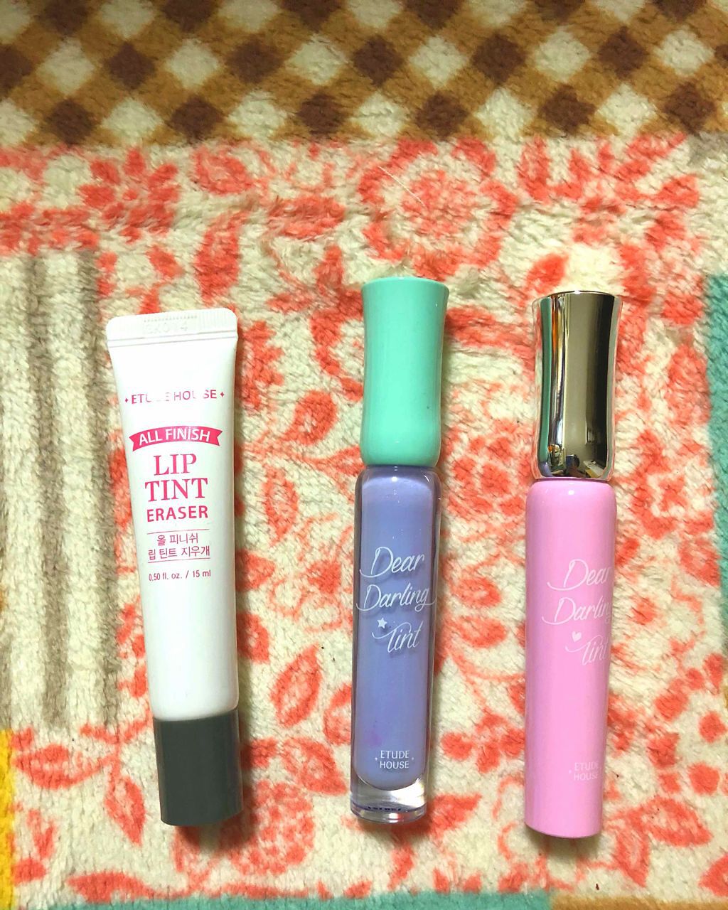 塗ると紫から青みピンクに変わります。 ピンクラメが入っていて可愛いです♡ 匂いはおもちゃのコスメみたいな感じで臭いです、、 #韓国コスメ#エチュード#リップ#プチプラ#プチプラリップ #プチプラコスメ#ティント