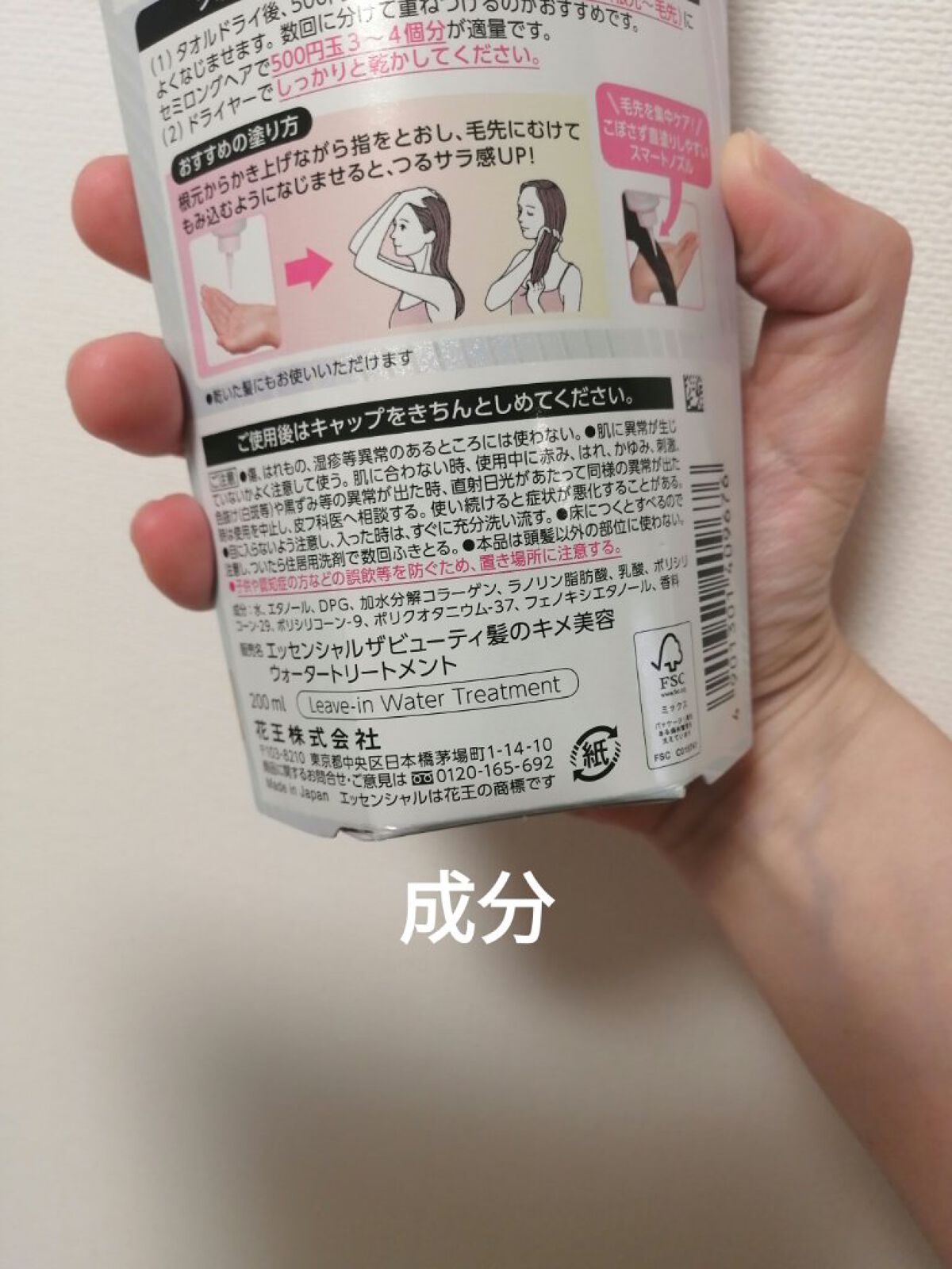 - <200ml> 水、ポリシリコーン-29、ラノリン脂肪酸、ポリシリコーン-9、ポリクオタニウム-37、加水分解コラーゲン、乳酸、DPG、エタノール、香料、フェノキシエタノール <つめかえ用 340ml> 水、エタノール、DPG、加水分解コラーゲン、ラノリン脂肪酸、乳酸、ポリシリコーン-29、ポリシリコーン-9、ポリクオタニウム-37、フェノキシエタノール、香料 <モネデザイン(200ml)> 水、ポリシリコーン-29、ラノリン脂肪酸、ポリシリコーン-9、ポリクオタニウム-37、加水分解コラーゲン、乳酸、DPG、エタノール、香料、フェノキシエタノール <NewJeans×MURAKAMI スペシャルデザイン> 水、フェノキシエタノール、香料、エタノール、DPG、乳酸、加水分解コラーゲン、ポリクオタニウム-37、ポリシリコーン-9、ラノリン脂肪酸、ポリシリコーン-29 <アリエルデザイン 200ml> 水、エタノール、DPG、加水分解コラーゲン、ラノリン脂肪酸、乳酸、ポリシリコーン-29、ポリシリコーン-9、ポリクオタニウム-37、フェノキシエタノール、香料