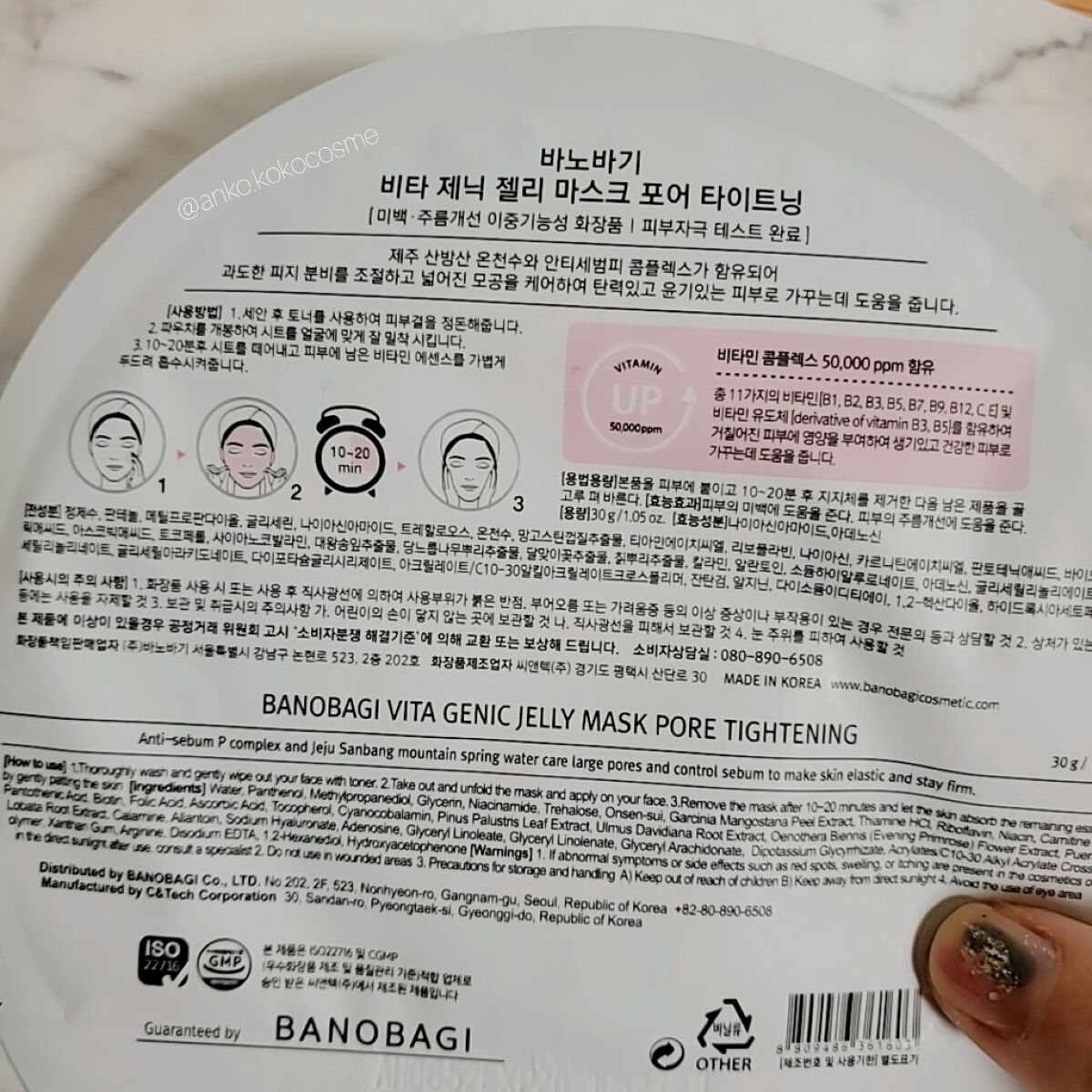 商品詳細情報BANOBAGI ビタジェニック ゼリーマスク ポアタイトニング