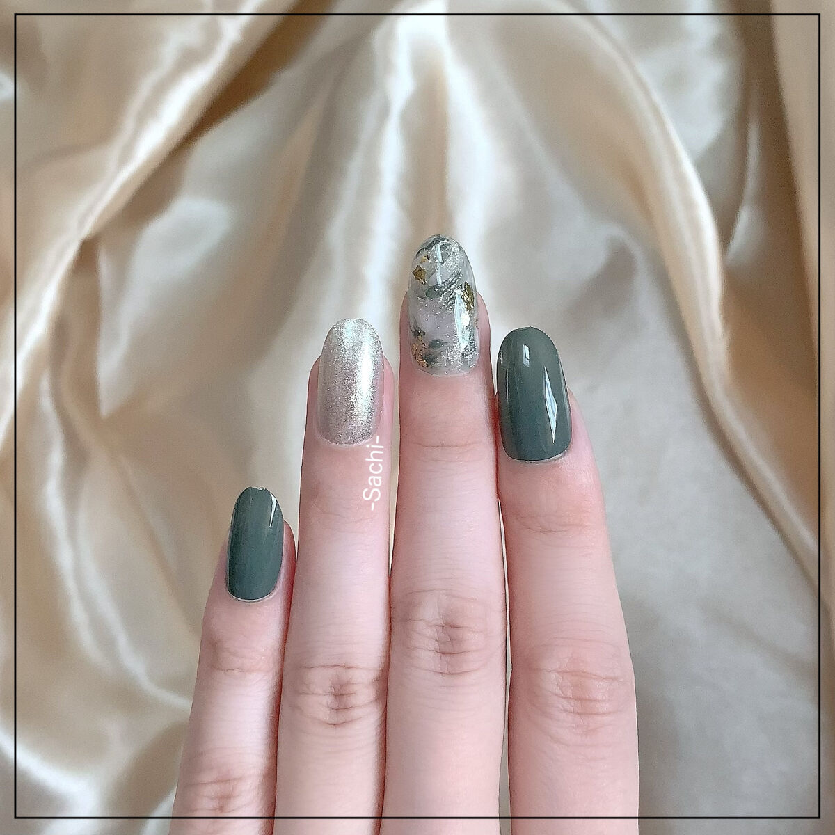 ワンカラーでも指ごとに色を変えるだけでオシャレに見えます💕 画像のようにゴールドラインとストーンを少し足すだけで華やかさがアップ🥰 何度かご紹介したことのあるスポンジで作るグラデーションです✨ スポンジを使うことで境目が綺麗に馴染んでくれます💕 アルミホイルの上でブラウンとトップコートを1:1くらいで混ぜたものを、トップコートのハケに取って3箇所に塗るだけ👌 事前に混ぜたものを塗ることで、爪の上でぼかすより簡単に出来ます💕 ベースカラーが乾く前に点置きしてぼかすことで綺麗にぼかせます✨ スピードが大事なので、使うポリッシュのキャップは全て開けておきましょう😊 天然石のラインはガタガタの方がより天然石っぽく見えるので、ラインを描くのが苦手な方でも大丈夫🙆♀️ 難しそうに見えて、やってみると意外と簡単に出来ます♡