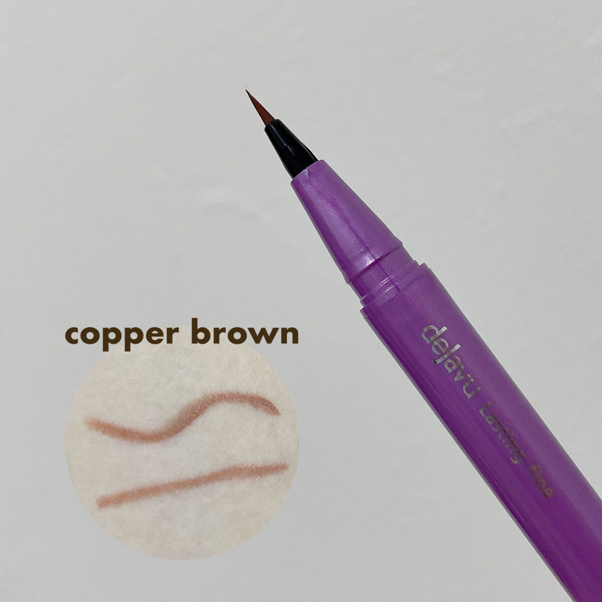 💜dejavuラスティンファインEショート筆リキッドミディアムブラウン💜筆先が“5mmのショート筆”で、筆が長すぎずしなりにくいため、安定して極細ラインが描けるよう設計されていてブレずに狙ったラインが描きやすいアイライナーです☺️皮脂・汗・涙...