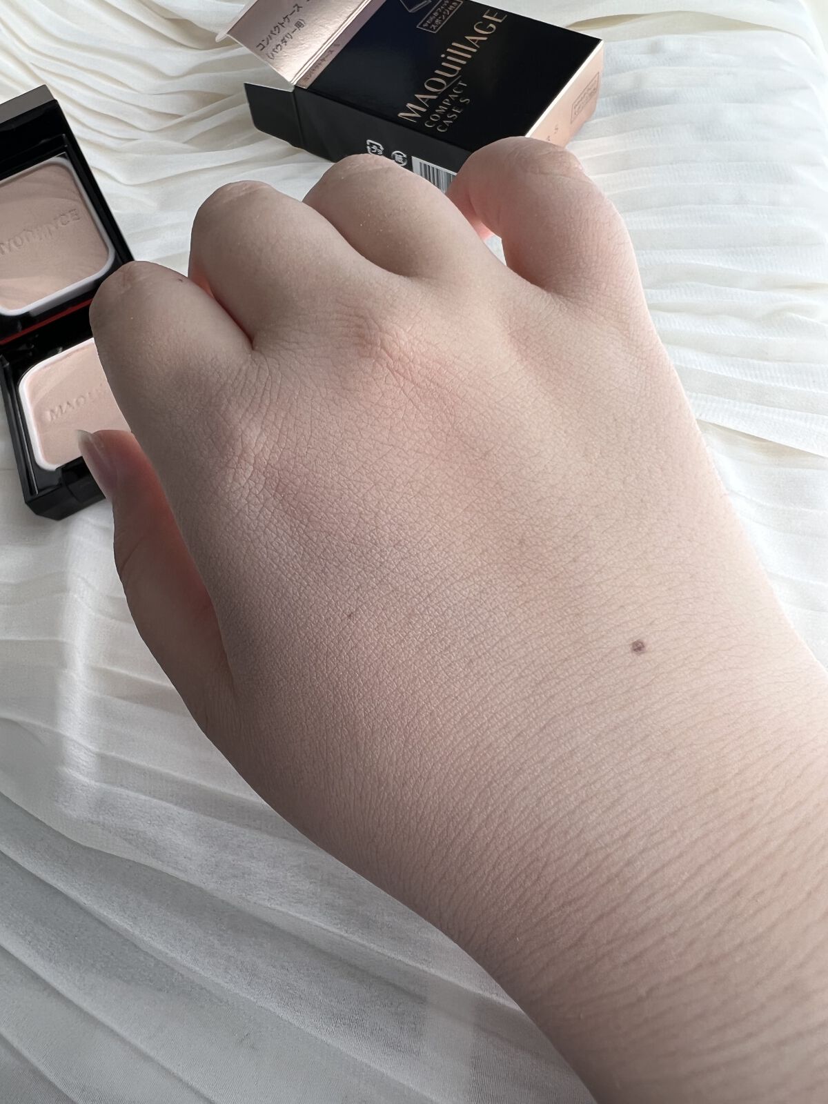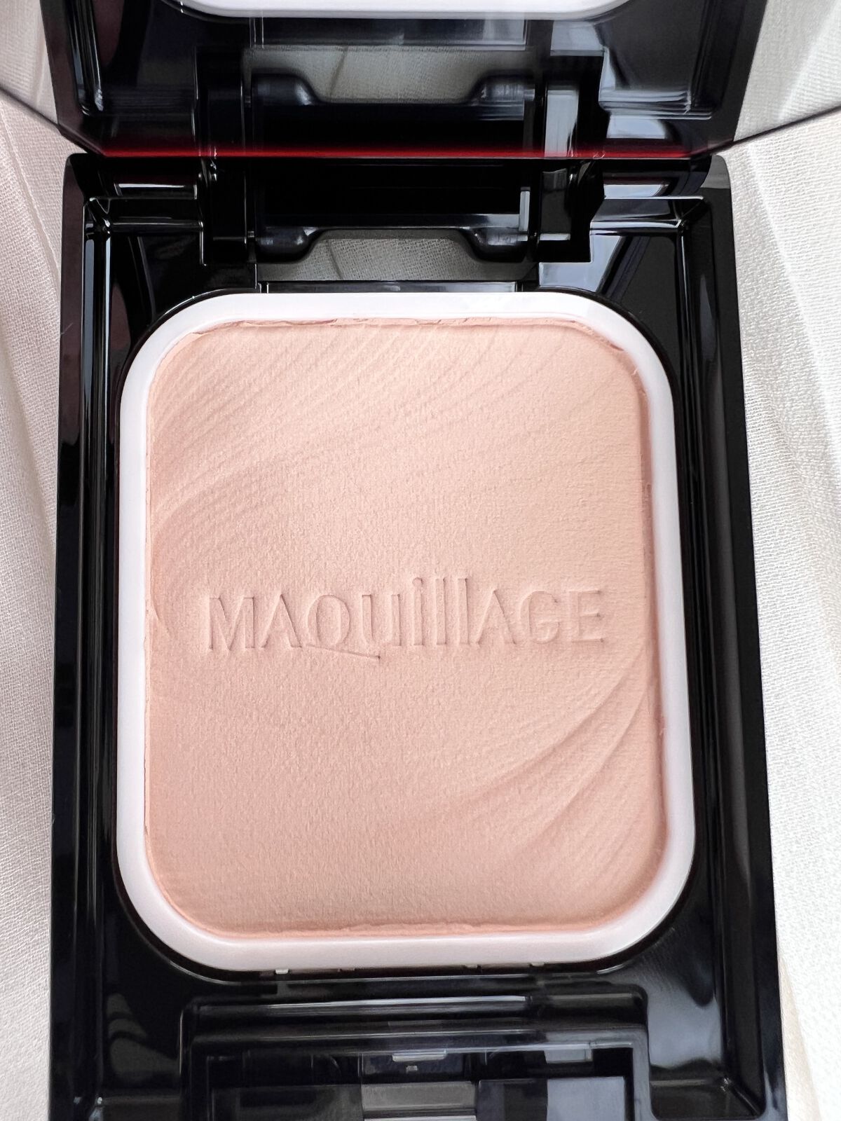 マキアージュって若い子向けのイメージがあると思うんですが、最近は大人の女性向けにもなっていて、保湿感やカバー力がアップしているし、粒子も細かくてなめらかにフィットするから、私は好んで使っています。オススメですよ! 特筆すべきはカラーでしょうね、やっぱり。8色展開で、私は今回ベビーピンクオークル00を使用しています。ベビーピンクオークル00はマキアージュ史上最高の明るいピンク系のカラー。 私はいつも、リキッドかクリームファンデかクッションファンデをベースに使っていて、仕上げにマキアージュドラマティックパウダリー EXを塗っています。 このパウダリーファンデのなめらかな質感は、ホント気にいっていて。大人の女性のコスメに対する審美眼は、たくさん今までコスメを使用しているからこそ、かなり厳しい基準だと思うんですが、少なくとも私は、マキアージュのファンデはかなり良いと思いました。
