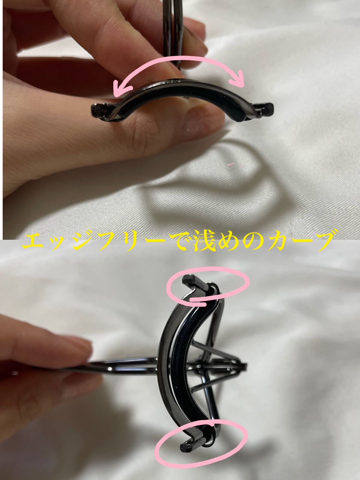 - 一度はさむだけでまつ毛全体の根もとをしっかりとらえてカールできるアイラッシュカーラー。 支柱がまぶたにあたらないエッジフリー設計と目のカーブに適したカーブを採用しているので、全体のまつ毛を根もとからしっかりとらえることができ、軽い力で美しくカールできます。 目尻など部分的に使用しても、しっかりカールできます。