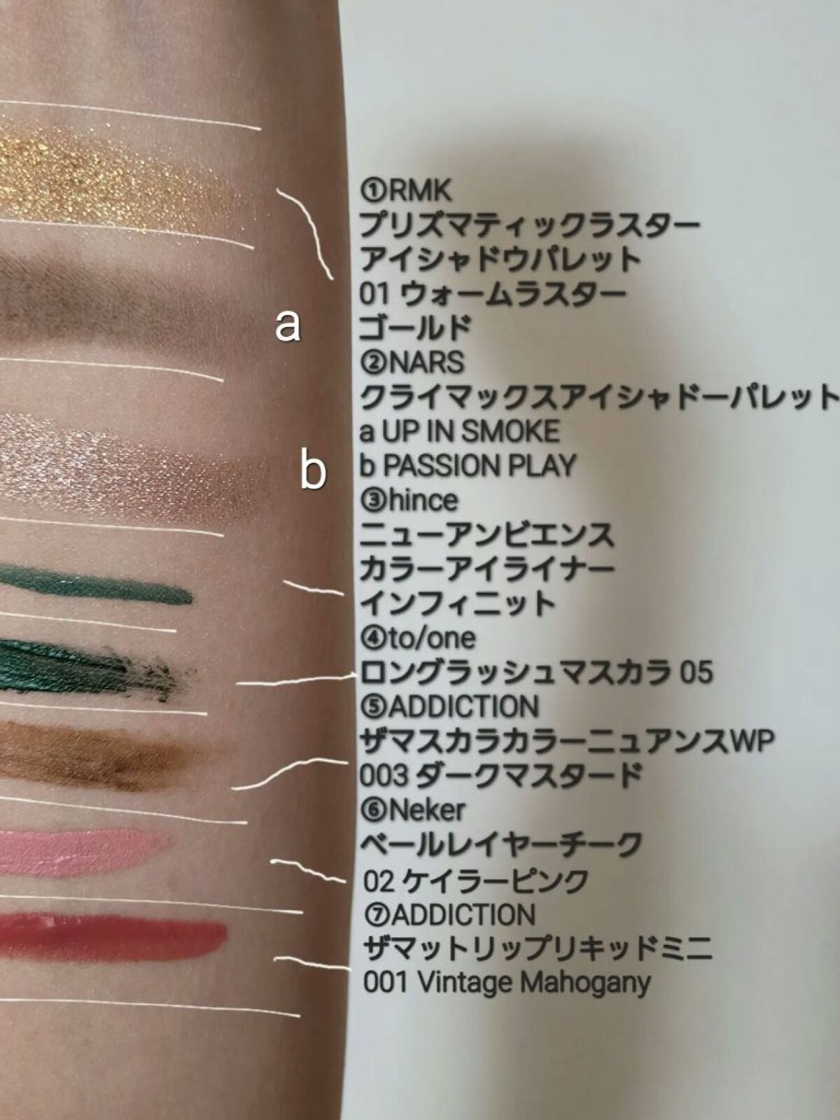 アイブロウは #WHOMEE の#レディモーヴ を使用! #hince の #ニューデップスアイシャドウパレット の a Lowkeyを上瞼全体に馴染ませる。 #rmk の#ザナウナウアイズ 02の #シークレットダスト を目頭に✨ #ヒンス の #ニューアンビエンスカラーマスカラ 上睫毛にブルーの#アンディファインド 下睫毛にオレンジ系の#ライブリー を。 #celvoke の #エンスロールマットリップス 03の テラコッタを💄💋