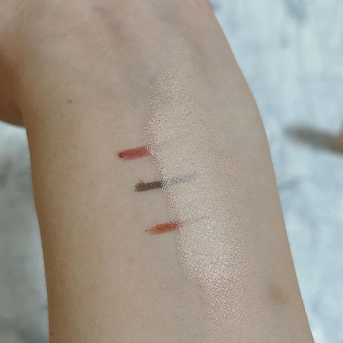 コンシーラーって厚塗り感出ないのに、肌の色むらなくなるし、毛穴カバーしてくれるし、素晴らしいアイテムですよね。 保湿力とツヤ感がとにかくすごいです。 ツヤ感が高いので、ハイライト効果もあって肌がグンと明るくなります。 伸びと肌なじみも抜群。 なじませるのが簡単なので、とっても使いやすいです。