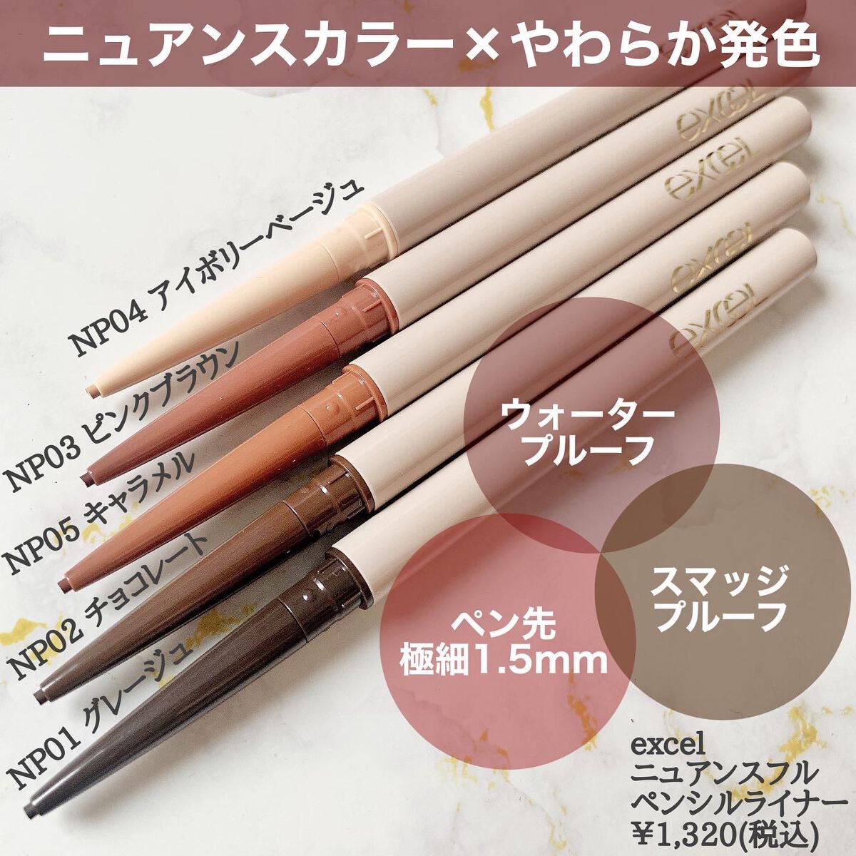 大好きなんです✨⋆⋆エクセルニュアンスフル ペンシルライナーNP01:グレージュ⋆⋆派手な商品ではありませんが、これは名品だと思います✨1.5mmの極細芯で目のキワまでスルスル描けて、すぐ馴染ませれば綺麗にぼかすこともでき、目尻のラインまでこ...