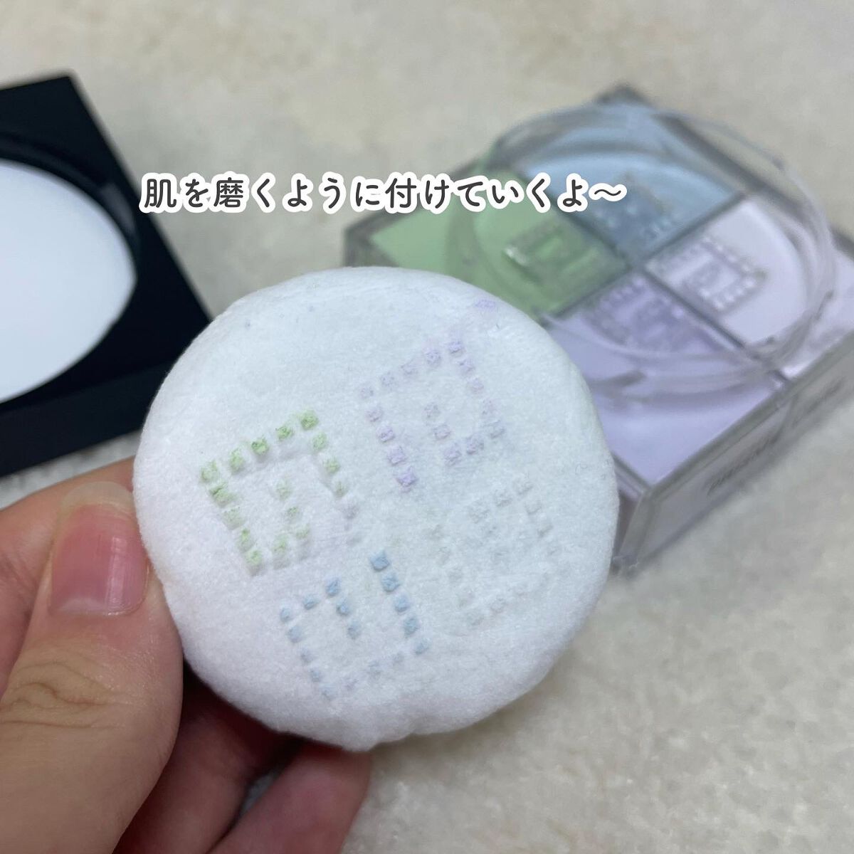 コットンキャンディみたいなやわらかさと透明感カラーのパウダーで、塗布するとお肌のくすみや色むらがカバーされてナチュラルなトーンアップ。 細かなパールがキラキラしてとても綺麗に仕上がる。私はティッシュにパウダーを出して、大きめなブラシにとって顔にふわっとのせてます☺️✨ 24時間明るい透明感が持続・12時間仕上がりキープ&補正力が持続・肌色のムラをカバーしながら、透明感も高める4色構成