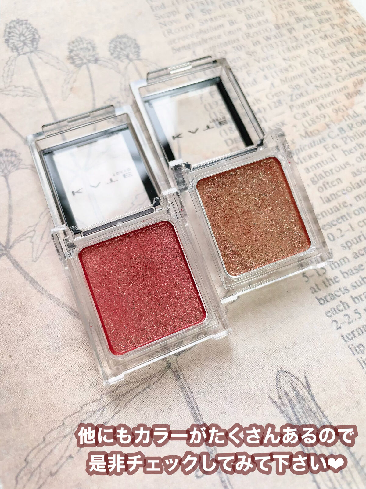 もうぱっと見で色味に惹かれました❣️ 使い方次第で可愛いメイクもクールなメイクもできます😁 発色も良いです👌 KATEのアイシャドウは色々な種類がありますが、私的には全種類欲しいくらい好きです❤️ まだKATEのアイシャドウなどを試した事ない方には是非オススメです👍