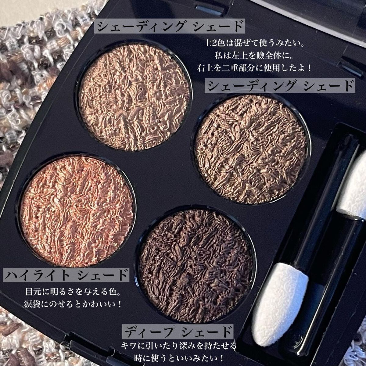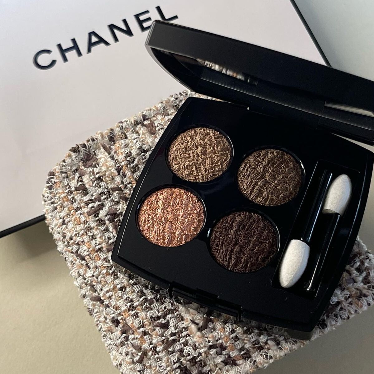 CHANEL秋コスメ✨レキャトルオンブルブトン限定4色の中から心を奪われたのは…🌟239ブトンバロック🌟パープルラメの圧倒的な輝きに心臓を撃ち抜かれた💘他のカラーも上品なパール感で捨て色ゼロ。メタリック・コッパー・ゴールドの組み合わせが可愛す...