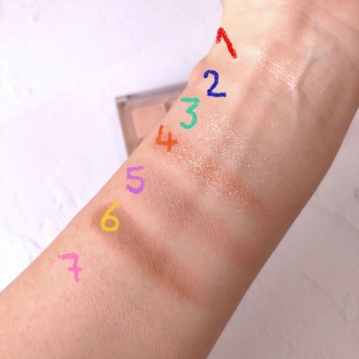 イルミの01が最もキラキラが強く、並べてみるとほんの少し緑を感じるので赤みカバーができるかも 02はくすみに 03は血色感でピンクの濃さはのばすと肌になじむ ブライトはカバー力高めでややさっぱり UVはイルミ同様みずみずしくてSPF値高め イルミ01〜03はのばすとパール感薄まるのでハイライターとしても使える ブライトは他よりカバー力高いかわりに若干キシキシを感じる UVはツヤと質感のバランスがいいけどみずみずしいから夏にはちょっと崩れやすいかも