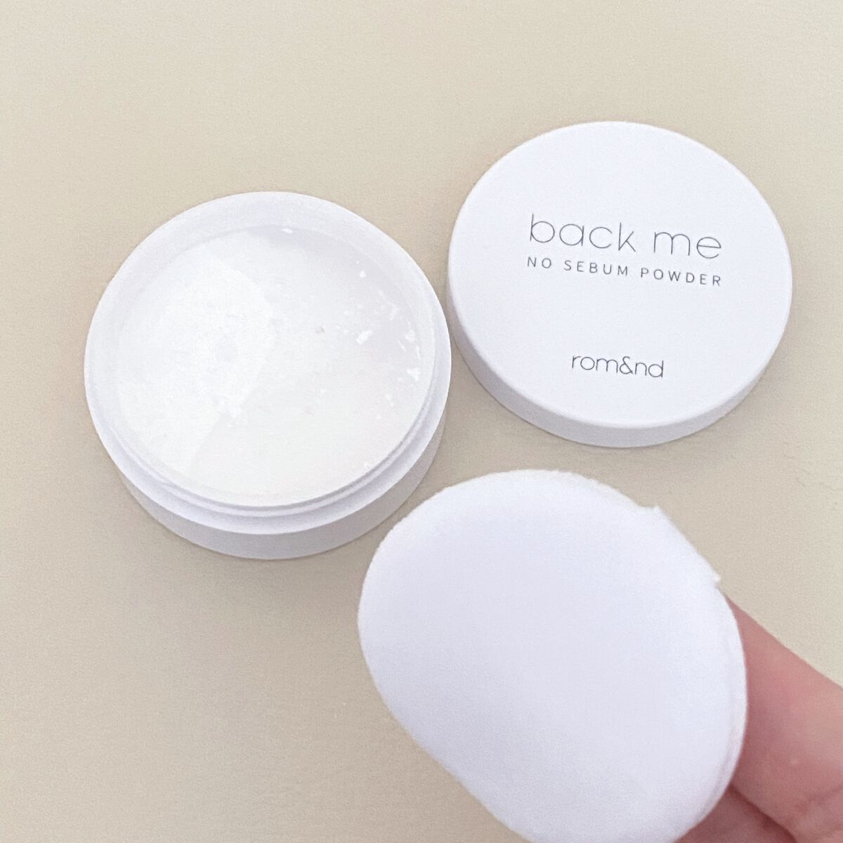 rom&ndロムアンドバックミーノーセバムパウダー5gメガポで購入したものです。サラサラ系のパウダー好きなのでこれもよかったです💗イニスフリーのノーセバムに比べるとイニスフリーの方が粒子が細かくてサラサラ感がある感じがしました。でも微々たる差...
