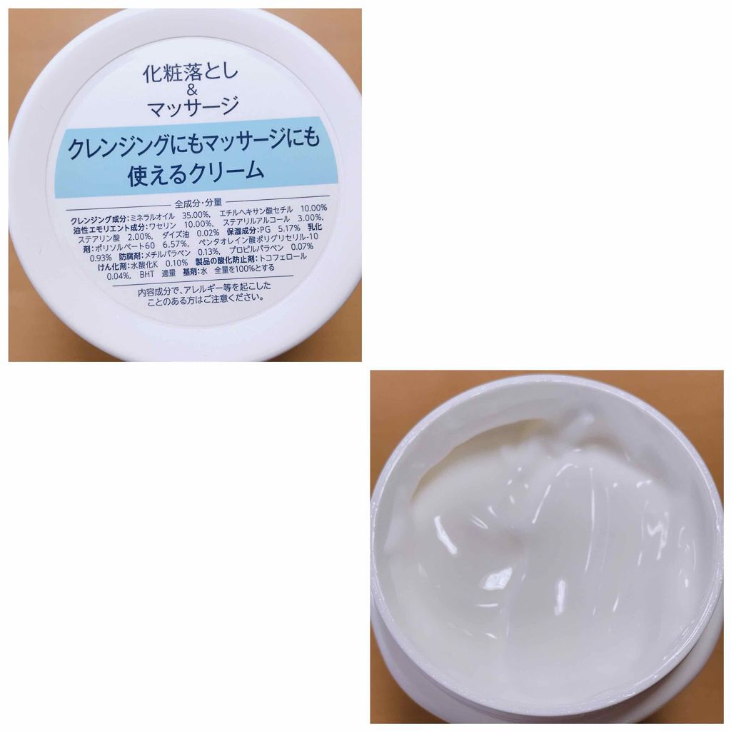 - クレンジング成分:ミネラルオイル 35.00% , エチルヘキサン酸セチル 10.00% 油性エモリエント成分:ワセリン 10.00%, ステアリルアルコール 3.00%, ステアリン酸 2.00% 保湿成分:PG 5.17% 乳化剤:ポリソルベート60 6.57%, ペンタオレイン酸ポリグリセリル-10 0.93% 防腐剤:メチルパラベン 適量, プロピルパラベン 適量 pH調整剤:水酸化K 適量 製品の酸化防止剤:トコフェロール 適量 成分の酸化防止剤:BHT 適量 基剤:水 全量を100%とする