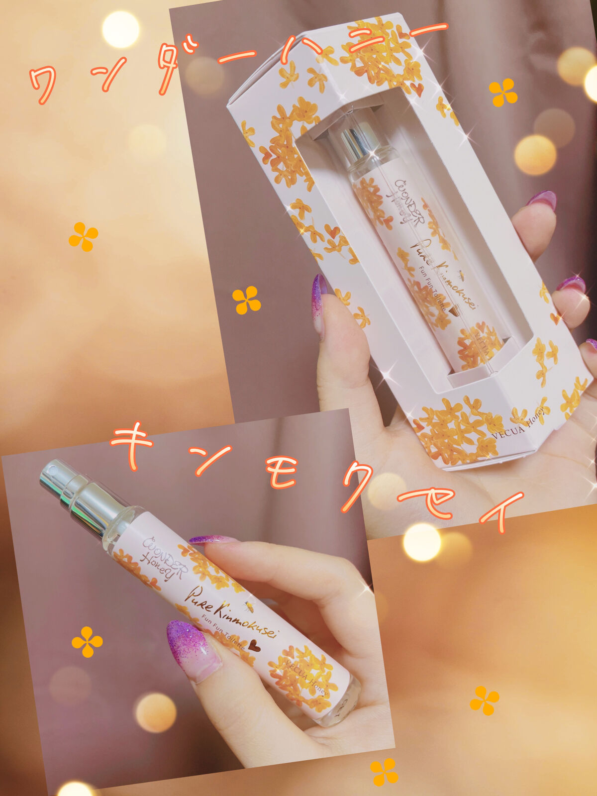 ワンダーハニー エンリッチヘアオイル ピュアキンモクセイ 50ml 1540円 ボトルはもちろん、パッケージもやっぱ可愛い……!🥹♥️ テクスチャはさらっとしててソフトウェットな仕上がりがウリみたい。 香りは言うまでもなくいい!!🥺💕 髪にさらりと馴染んでくれるしベタつき感がなくて好き☺️ 髪が揺れる度に金木犀の香りがふんわり*.(*´͈ ˘ `͈*).* 軽いから乾いた髪に全然いけちゃう😉👌 金木犀好きな人はぜひ試して見てくれ🥰