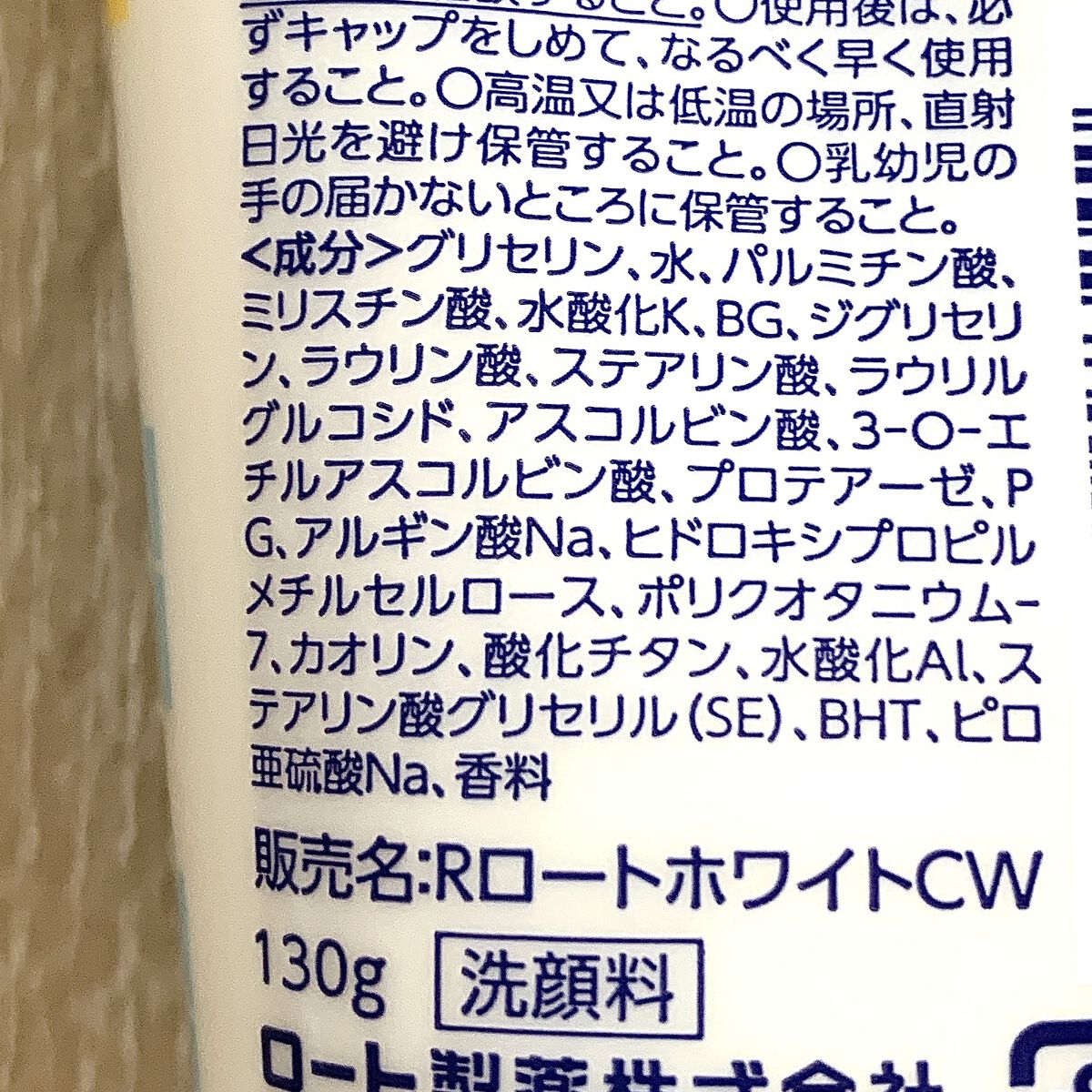 - <130g> カオリン、水、酸化チタン、BG、グリセリン、ジグリセリン、水酸化K、香料、水酸化Al、PG、ステアリン酸、アスコルビン酸、ヒドロキシプロピルメチルセルロース、3-O-エチルアスコルビン酸、ミリスチン酸、パルミチン酸、ラウリン酸、アルギン酸Na、ステアリン酸グリセリル(SE)、BHT、プロテアーゼ、ポリクオタニウム-7、ピロ亜硫酸Na、ラウリルグルコシド