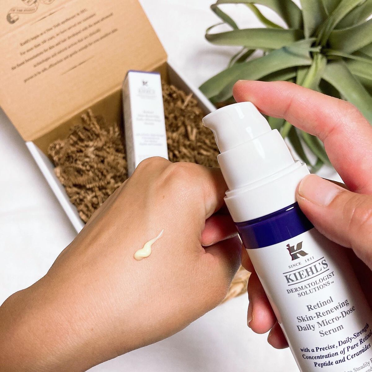 【#Kiehls/#DSRTNリニューイングセラム】キールズのレチノール美容液。紫外線から守り、酸化を防ぐ容器になっているそう!!レチノールは酸化しやすいそうなので、嬉しいポイント◎乳液のようなテクスチャーでベタベタがなく、軽い使用感だから使...