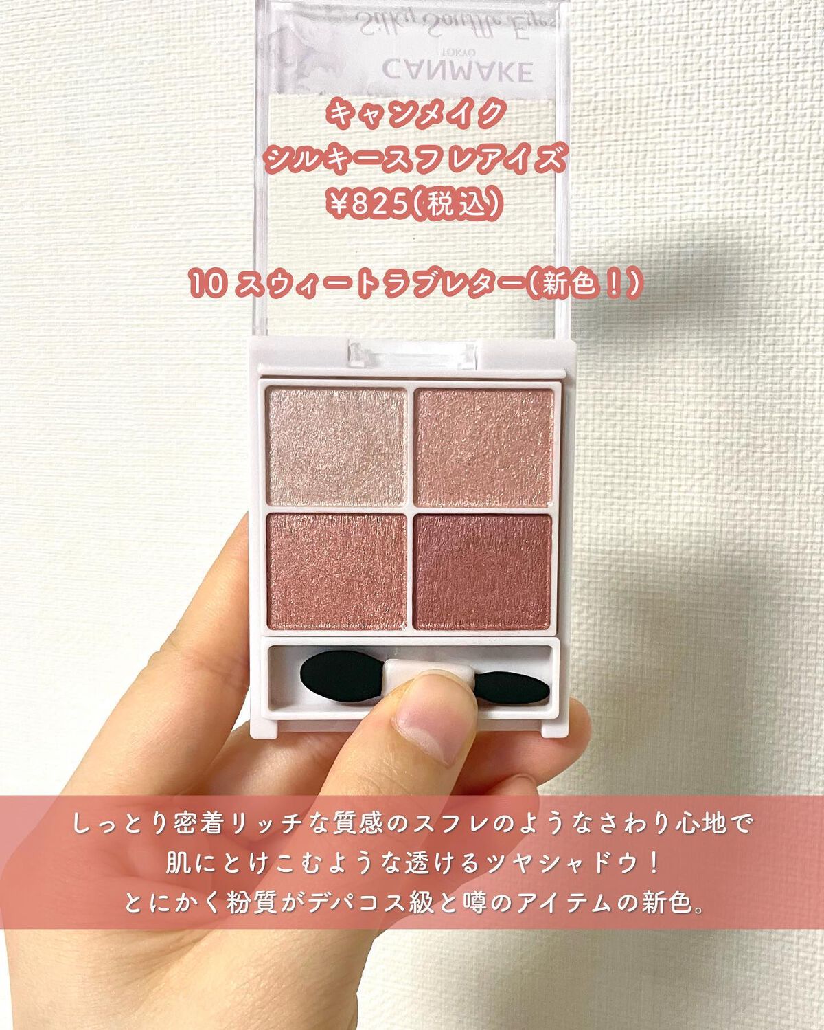 - しっとり密着!リッチな質感! 透けツヤ4色アイシャドウ シルクのようなツヤ感とスフレのようななめらかさ。 繊細なパールが配合されたやわらかなしっとりパウダーで、上品な目元に仕上がります。 ※2023年8月〜パッケージ順次リニューアル。