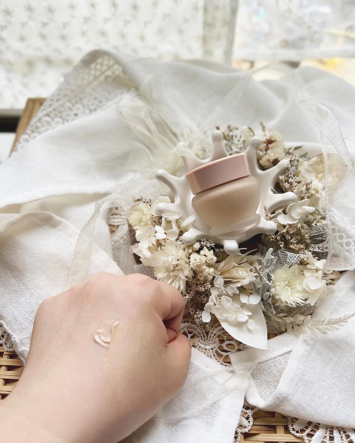 気になる毛穴や肌の凹凸、色ムラをしっかりカバーしてつるんとなめらかに整った肌に◎ ツヤ高いオイルを多く配合することで、肌にとけこむようなつや艶めきを与えてくれるそうです。 厚塗り感はないのにしっかり色ムラはカバーして均一な肌になる印象◎