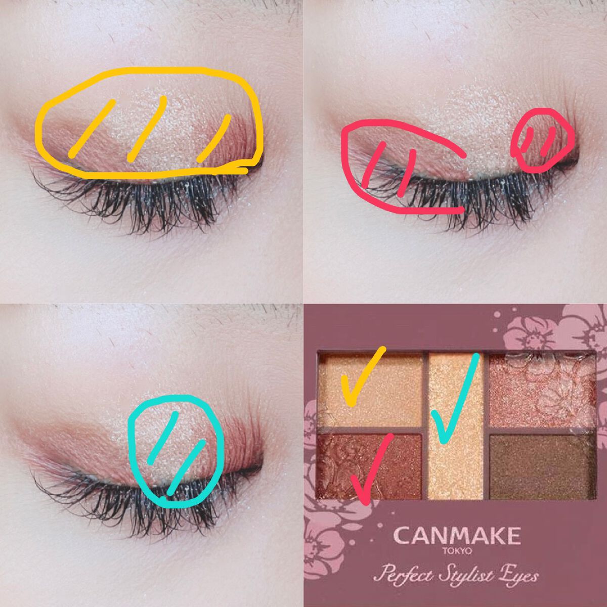 - 1枚のパレットで2つのスタイルが完成! 5色の欲ばりアイシャドウ♥ メインカラーを選んで2つのスタイルが楽しめる! A→B→D でスタイル1 A→C→D でスタイル2 繊細な粉質が、しっとりとまぶたに密着して色落ちを防ぎます。 透明感のあるキラうるトッピングジュエル(繊細ラメ)は、気分によってトッピング!