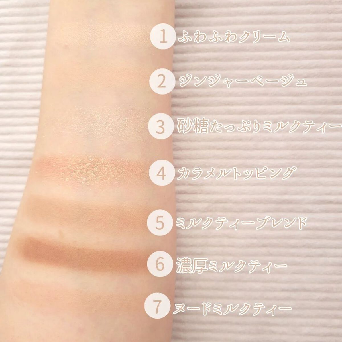 - <ヌードミルクティー> PET、ビスジグリセリルポリアシルアジペート-2、ポリブチレンテレフタレート、ホウケイ酸(Ca/Al)、アクリレーツコポリマー、トリイソステアリン酸ポリグリセリル-2、ホウケイ酸(Ca/チタン)、(エチレン/VA)コポリマー、水、メチルプロパンジオール、プロパンジオール、シリカ、酸化スズ、マイカ、酸化チタン、酸化鉄、カルミン、黄5 <カシミアモーヴ> タルク、合成フルオロフロゴパイト、ジエチルヘキサン酸ネオペンチルグリコール、窒化ホウ素、フェニルトリメチコン、ヘキサ(ヒドロキシステアリン酸/ステアリン酸/ロジン酸)ジペンタエリスリチル、ミリスチン酸Mg、リンゴ酸ジイソステアリル、ネオペンタン酸イソステアリル、ステアロイルオキシステアリン酸オクチルドデシル、ステアリン酸Mg、シリカ、サラソウジュ種子脂、水、メチルプロパンジオール、プロパンジオール、ポリブテン、トリエトキシカプリリルシラン、ジメチコン、酸化スズ、マイカ、酸化チタン、酸化鉄、カルミン、グンジョウ