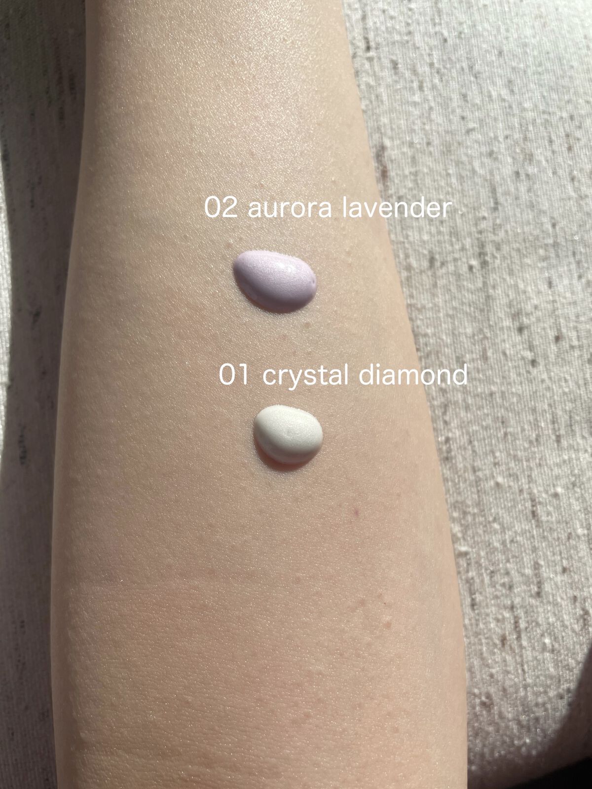 - <01 crystal diamond> 水、BG、DPG、メトキシケイヒ酸エチルヘキシル、トリエチルヘキサノイン、タルク、ジメチコン、ジエチルアミノヒドロキシベンゾイル安息香酸ヘキシル、ステアリン酸、アスコフィルムノドスムエキス、アスコルビン酸、アボカドエキス、カカオ脂、キウイエキス、ゴレンシ葉エキス、ヒバマタエキス、ブドウ葉エキス、ミルシアリアデュビア果実エキス、ラミナリアクロウストニエキス、レモン果実エキス、BHT、PEG-32、PEG-6、TEA、アクリレーツコポリマー、カルボマー、シリカ、ステアリン酸グリセリル、ステアリン酸グリセリル(SE)、セスキオレイン酸ソルビタン、セテアリルアルコール、ダイヤモンド末、テトラ(ジ-t-ブチルヒドロキシヒドロケイヒ酸)ペンタエリスリチル、トリセテアレス-4リン酸、ハイドロゲンジメチコン、ポリステアリン酸スクロース、ポリソルベート80、ポリプロピレン、ヤシ油、ラウリル硫酸Na、レシチン、フェノキシエタノール、香料、マイカ、酸化チタン <02 aurora lavender> 水、BG、DPG、メトキシケイヒ酸エチルヘキシル、トリエチルヘキサノイン、ジメチコン、ジエチルアミノヒドロキシベンゾイル安息香酸ヘキシル、ステアリン酸、PEG-32、PEG-6、シリカ、アスコフィルムノドスムエキス、アスコルビン酸、アボカドエキス、カカオ脂、キウイエキス、ゴレンシ葉エキス、ヒバマタエキス、ブドウ葉エキス、ミルシアリアデュビア果実エキス、ラミナリアクロウストニエキス、レモン果実エキス、BHT、TEA、アクリレーツコポリマー、カルボマー、ステアリン酸グリセリル、ステアリン酸グリセリル(SE)、セスキオレイン酸ソルビタン、セテアリルアルコール、タルク、ダイヤモンド末、テトラ(ジ-t-ブチルヒドロキシヒドロケイヒ酸)ペンタエリスリチル、トリセテアレス-4リン酸、ポリステアリン酸スクロース、ポリソルベート80、ポリプロピレン、メチコン、ヤシ油、ラウリル硫酸Na、レシチン、フェノキシエタノール、香料、グンジョウ、マイカ、酸化チタン、酸化鉄、赤226 <03 cosmic pink> 水、BG、DPG、メトキシケイヒ酸エチルヘキシル、トリエチルヘキサノイン、ジメチコン、ジエチルアミノヒドロキシベンゾイル安息香酸ヘキシル、ステアリン酸、PEG-32、PEG-6、シリカ、アスコフィルムノドスムエキス、アスコルビン酸、アボカドエキス、カカオ脂、キウイエキス、ゴレンシ葉エキス、ヒバマタエキス、ブドウ葉エキス、ミルシアリアデュビア果実エキス、ラミナリアクロウストニエキス、レモン果実エキス、BHT、TEA、アクリレーツコポリマー、カルボマー、ステアリン酸グリセリル、ステアリン酸グリセリル(SE)、セスキオレイン酸ソルビタン、セテアリルアルコール、タルク、ダイヤモンド末、テトラ(ジ-t-ブチルヒドロキシヒドロケイヒ酸)ペンタエリスリチル、トリセテアレス-4リン酸、ポリステアリン酸スクロース、ポリソルベート80、ポリプロピレン、メチコン、ヤシ油、ラウリル硫酸Na、レシチン、フェノキシエタノール、香料、グンジョウ、マイカ、酸化チタン、酸化鉄、赤226