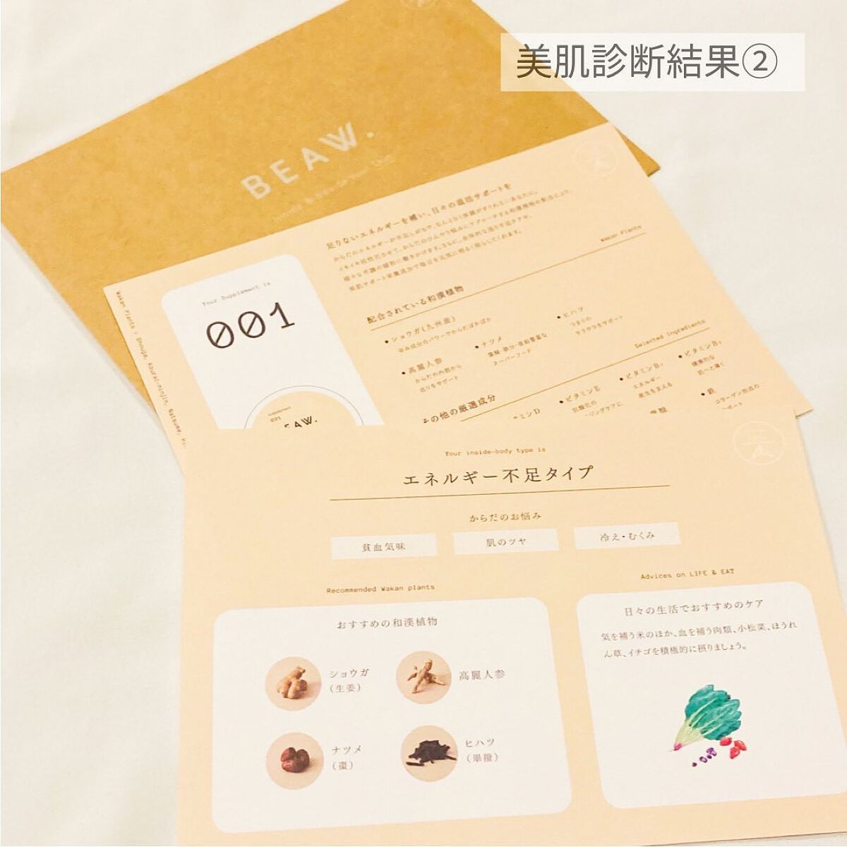 - ・BEAW.のパーソナライズケアは始めにパーソナライズ診断を行い、20種類の和漢と、自然由来の保湿成分の組み合わせから、一人ひとりに合わせた製品をお届けします。 ・現在の自分の悩みにぴったりのパーソナルケアキット、和漢植物由来成分を配合した2剤式のセラムとサプリメントのセットでお届けします。からだの内と外から同時に理想の美しさをめざせるデュアルケアで、あなたの美容をサポートします。 ・美容液は、肌荒れ予防、乾燥、毛穴、テカリ、くすみ*、年齢肌、ツヤ肌、などその人それぞれの悩みに対して適した処方で国産和漢植物成分と、植物エキス、ビタミンやセラミド、プラセンタ、ナイアシンアミド、などを配合した保湿成分を分析結果に合わせて配合。*乾燥による ・サプリメントは体の内側からキレイをサポートする国産和漢植物成分と20種類以上のビタミン、ミネラルをそれぞれに合わせて配合。 -対象商品- BEAW.リッチセラム003、008、015 BEAW.サプリメント:001、007、031 BEAW.フェイスウォッシュ:019、026、045 -内容量- BEAW.リッチセラム:30ml BEAW.サプリメント:60粒 BEAW.フェイスウォッシュ:80g