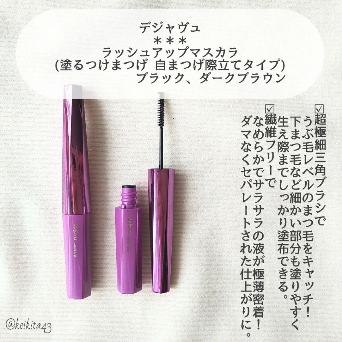 デジャヴュ「塗るつけまつげ」自まつげ際立てタイプを使うと、びっくりするほど自まつ毛がくっきりになります👏 これは、超極細三角ブラシとなめらかな液のおかげ✨ パンダ目にもならないし繊細なのにくっきりまつ毛になるので、もう 10本以上は軽くリピートしているかな👊🔥🔥