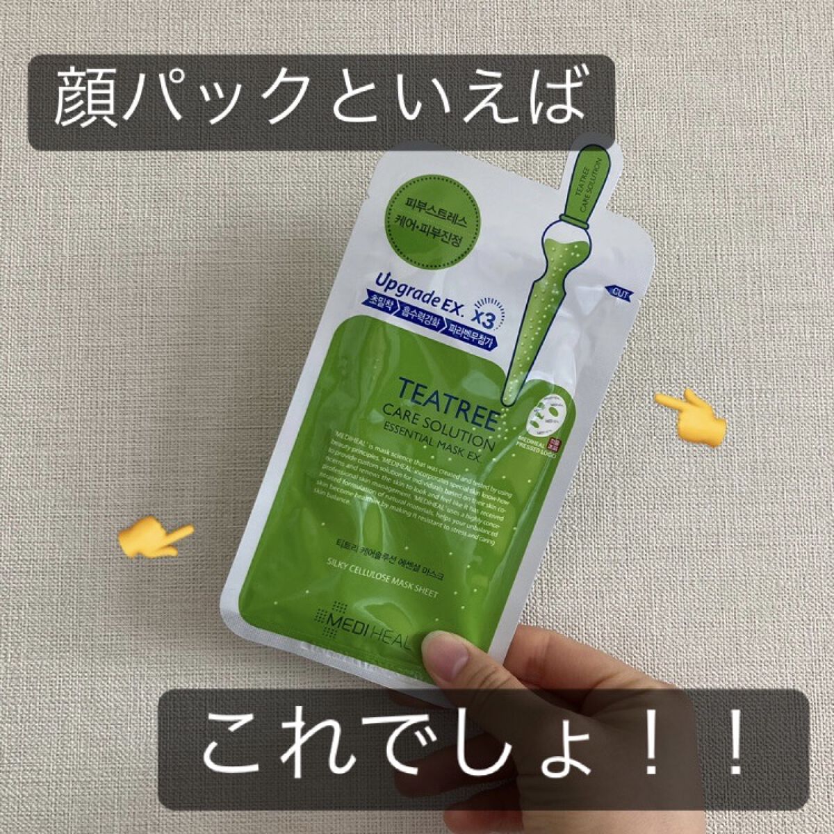 肌荒れ防止🌿韓国フェイスパック🇰🇷 "MEDIHEAL ティーツリーケア ソリューション エッセンシャルマスクEX" ティーツリーやシカ配合の鎮静系🌿 さっぱりした使用感だけどしっかり潤いも与えてくれます🫧 コスパ良くて使いやすい🙆♀️ 手軽に使えるのが嬉しい✌️