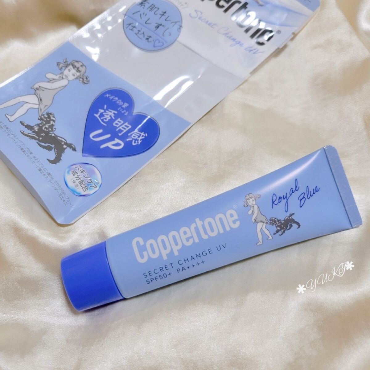 - 素肌キレイをバレずに仕込む♡ コパトーン シークレットチェンジUV 「コパトーン シークレットチェンジUV ロイヤルブルー」は、 ブルーカラーの色補正効果で透明感をプラス。 透きとおるように澄んだ印象の肌へナチュラルにトーンアップ※が叶う日焼け止めジェルです。 ●SPF50+/PA++++ ●汗や水に強いウォータープルーフ。石けんや洗顔料で簡単に落とせます。 ●もっと明るさが欲しい部分には重ね塗りもおススメ。 ●アレルギーテスト・パッチテスト済み(すべての方に皮膚刺激・アレルギーが起こらないというわけではありません。) ※メイク効果による