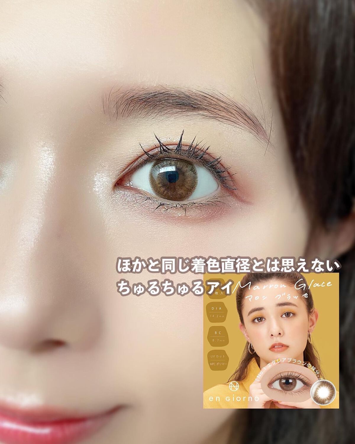 キャンマジ新色出たよ💕 馴染む立体感がヨジャドルっぽくて新色の中で1番よく使ってるカラー。 どんなメイクとも相性がいいので使いやすいです! 着色直径よりも体感大きめに感じるのも🙆🏻♀️ オレンジ感の少ないブラウンだから口紅やチーク次第で幼くも大人っぽくもなれる。 浮かない太めフチで可愛いさ溢れてます✨ レンズ単体だとめちゃくちゃピンクなのかなと思ったけど着けたら馴染みました💕 パキッとしないのでほわほわしたピンクが好きな人やラメメイクが好きな人にもおすすめ◎