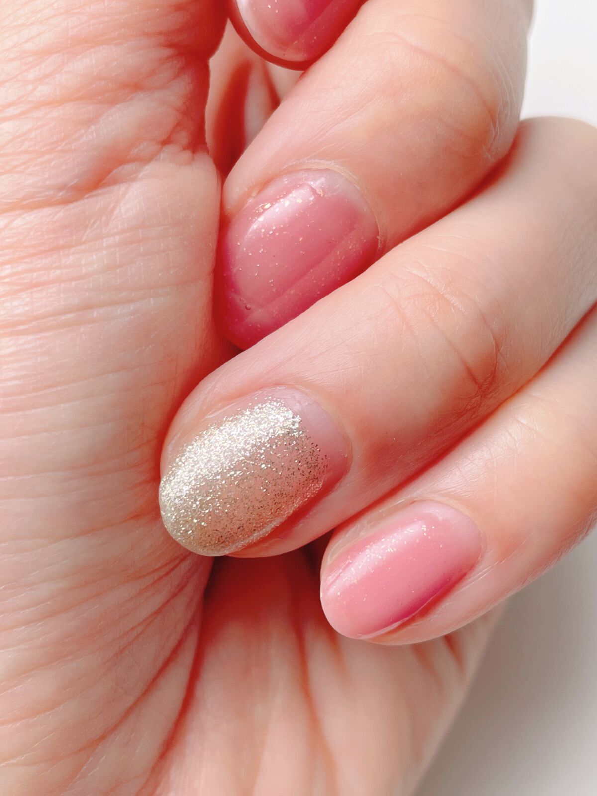 ダイソーのライトピンクはムラになりにくく、もし上手く行かなくても上からラメを重ねるのでセルフジェル初心者さんにもおすすめです!✨ 特にブルベさんにおすすめです! セリアのグリッタージェルもラメがザクザク入っていて、キラキラ輝いて可愛い🤍