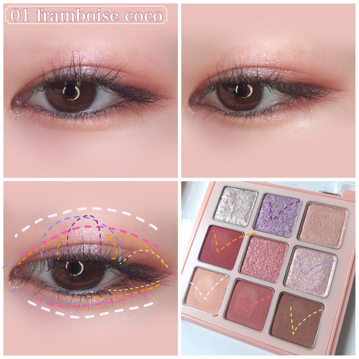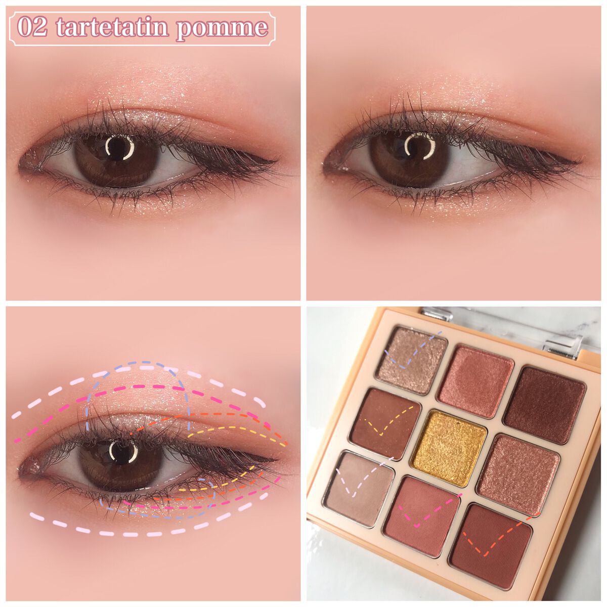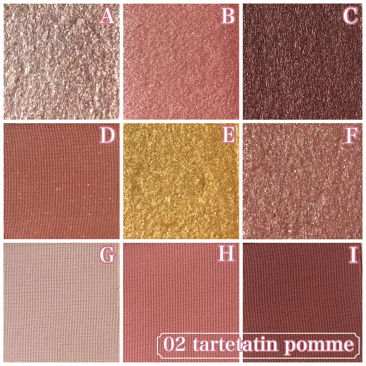 - 01 <a/f> ジメチコン、トリ(カプリル酸/カプリン酸)グリセリル、(ジメチコン/ビニルジメチコン) クロスポリマー、タルク、カルナウバロウ、クロルフェネシン、デヒドロ酢酸Na、ラウロイルリシン、トコフェロール、ホウケイ酸(Ca/Al)、マイカ、(PET/ポリメタクリル酸メチル)ラミネート、酸化チタン、酸化鉄、赤226、グンジョウ、酸化スズ <b/e> トリ(カプリル酸/カプリン酸)グリセリル、シリカ、ダイマージリノール酸ジ(イソステアリル/フィトステリル)、合成フルオロフロゴパイト、ダイマージリノール酸ダイマージリノレイルビス(ベヘニル/イソステアリル/フィトステリル)、水酸化Al、カルナウバロウ、トコフェロール、ホウケイ酸(Ca/Al)、マイカ、酸化チタン、酸化鉄、グンジョウ、赤226、コンジョウ、酸化スズ <c> アルミナ、合成フルオロフロゴパイト、タルク、ジフェニルシロキシフェニルトリメチコン、水添ポリデセン、(イソステアリン酸ポリグリセリル-2/ダイマージリノール酸)コポリマー、ジメチコン、硫酸Ba、ジステアリン酸Al、クロルフェネシン、デヒドロ酢酸Na、ステアリン酸Mg、トコフェロール、酸化チタン、マイカ、酸化鉄、グンジョウ、酸化スズ <d/g/h/i> タルク、合成フルオロフロゴパイト、窒化ホウ素、スクワラン、ナイロン-12、(ビニルジメチコン/メチコンシルセスキオキサン)クロスポリマー、ペンチレングリコール、ホホバ種子油、デヒドロ酢酸Na、水酸化Al、シア脂、トコフェロール、マイカ、酸化鉄、酸化チタン、赤226、グンジョウ、ホウケイ酸(Ca/Al)、酸化スズ 02 <a> ジメチコン、トリ(カプリル酸/カプリン酸)グリセリル、(ジメチコン/ビニルジメチコン)クロスポリマー、タルク、カルナウバロウ、クロルフェネシン、デヒドロ酢酸Na、ラウロイルリシン、トコフェロール、マイカ、ホウケイ酸(Ca/Al)、酸化チタン、酸化鉄、酸化スズ <b> アルミナ、タルク、合成フルオロフロゴパイト、ジフェニルシロキシフェニルトリメチコン、水添ポリデセン、(イソステアリン酸ポリグリセリル-2/ダイマージリノール酸)コポリマー、ジメチコン、硫酸Ba、ジステアリン酸Al、ステアリン酸Mg、クロルフェネシン、デヒドロ酢酸Na、トコフェロール、酸化チタン、マイカ、酸化鉄、赤226、グンジョウ、酸化スズ <c/e/f> トリ(カプリル酸/カプリン酸)グリセリル、シリカ、ダイマージリノール酸ジ(イソステアリル/フィトステリル)、ダイマージリノール酸ダイマージリノレイルビス(ベヘニル/イソステアリル/フィトステリル)、水酸化Al、合成フルオロフロゴパイト、カルナウバロウ、トコフェロール、マイカ、ホウケイ酸(Ca/Al)、酸化チタン、酸化鉄、黄4、赤226、グンジョウ、酸化スズ <d/g/h/i> タルク、合成フルオロフロゴパイト、窒化ホウ素、スクワラン、ナイロン-12、(ビニルジメチコン/メチコンシルセスキオキサン)クロスポリマー、ペンチレングリコール、ホホバ種子油、デヒドロ酢酸Na、水酸化Al、シア脂、トコフェロール、マイカ、酸化鉄、酸化チタン、ホウケイ酸(Ca/Al)、赤226、黄4、グンジョウ、酸化スズ ※アルファベットはパレットを正面から見た1段目左からabc、2段目左からdef、3段目左からghiの順です。