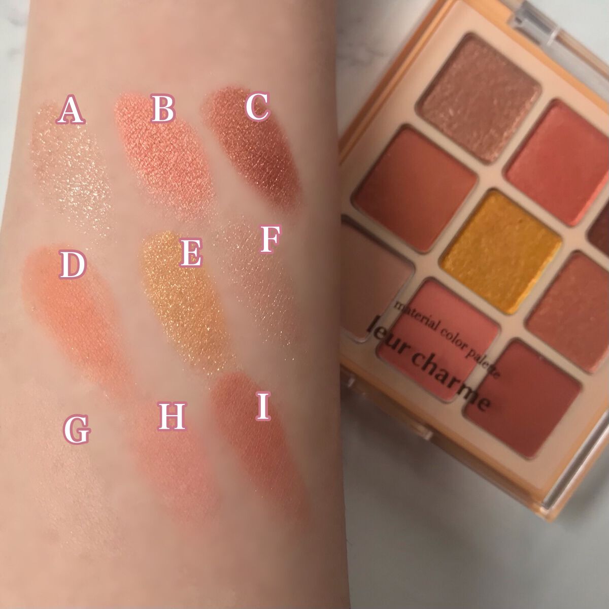 発色と質感にこだわった日本製9色アイシャドウパレット「leur charme material color palette(ルルシャルム マテリアルカラーパレット)」 煮詰めた果実の奥深さとみずみずしい輝きがとけこむ、奇跡のぜいたくパレット しっとりした粉質で高密着!ラメの輝きがえぐいほど綺麗✨ 温かみのあるイエベカラー!