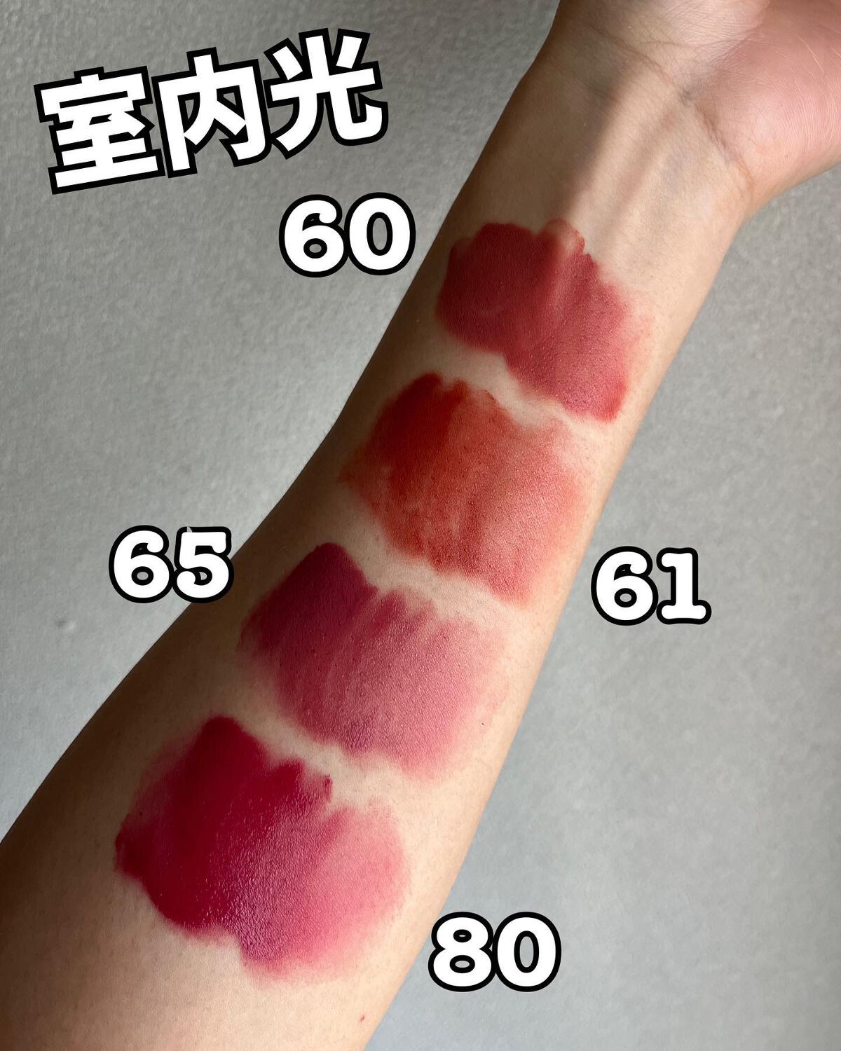 このリップ、発色がめっちゃくちゃ良いです!! あんまり濃くしたくない場合は、少しのせて指でポンポン伸ばすと濃さが調節できます✨ 私の推しは61番🤍 絶妙なブラウンカラーが可愛い✨