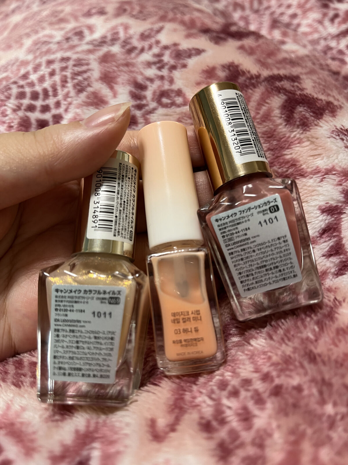 デイジークの桃のネイルとキャンメイクのネイルでグラデーションネイルもやってみたら、色合いが可愛すぎました😊 グラデーションのやり方は、私の自己流ですが、桃のネイルを斜めに置き、キャンメイクのネイルも同様に置き、キャンメイクのネイルの筆で境目をぼかしました。 簡単にできるので、やってみて下さい!
