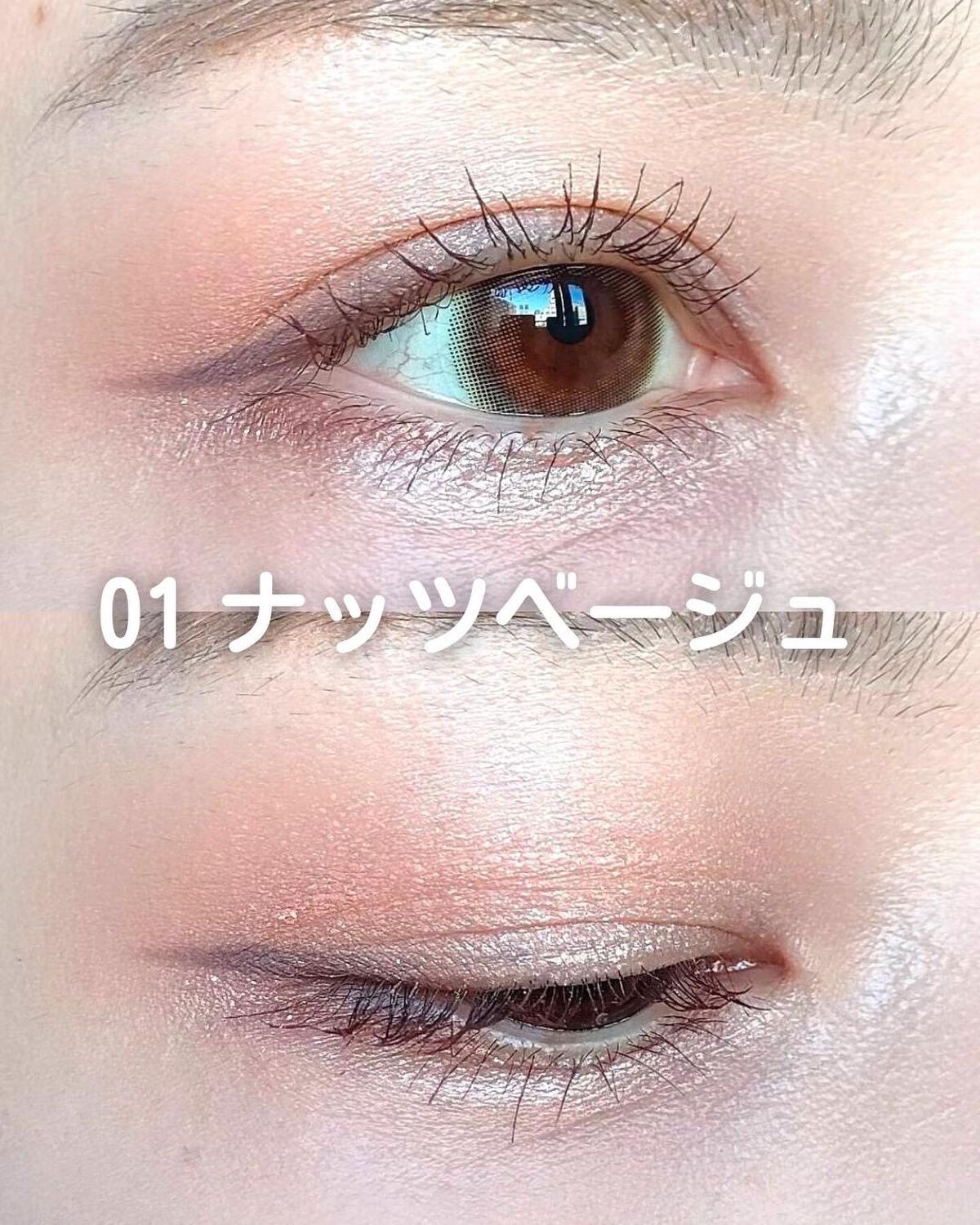 - ラメ・パール・マット3質感の4色アイシャドウ。 肌馴染みの良いベージュを基調としたカラー。ラメ・パール・マットの3質感を重ねて、自然にまぶたを強調し奥行のある大きな目元へ。 しっとり溶け込むような柔らかなパウダーなので、スルスル伸びてまぶたにピタッと密着。保湿成分(スクワラン・ホホバ種子油)配合。