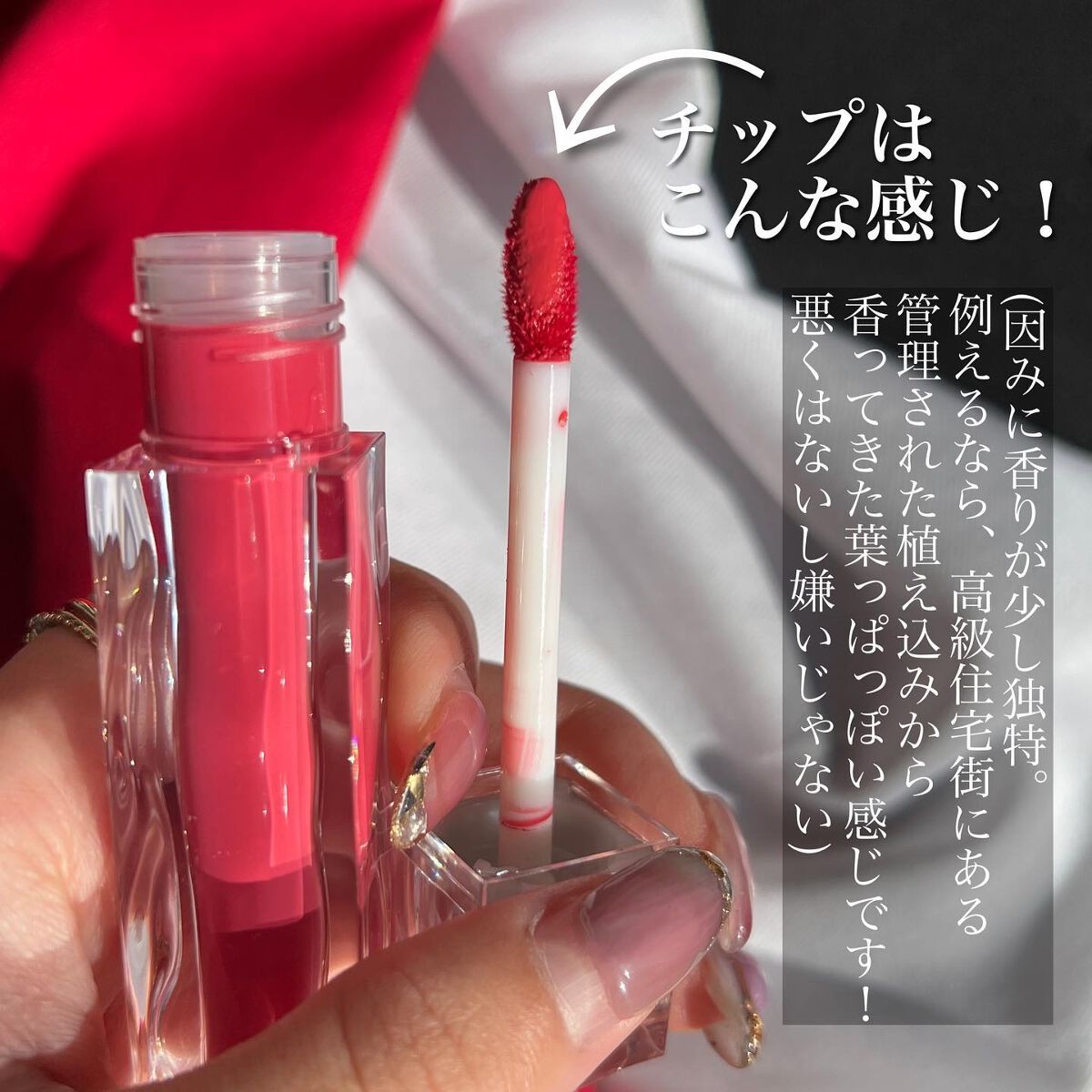 何が好きってもう見た目が可愛い! 磨りガラス風でコロンとしてて、これ 嫌いな女子おるんか?って思う🤤💓 そして香りね!りんごソーダ🍎みたいな 匂いがするのよ〜癒され!! そして当たり前に色と色持ちが良いです!!👍🔥 どんなカラータイプの方にでも対応したカラバリと、 塗った唇の満ち足りた果汁感……!🍋✨ 潤いが続く時間が長いと感じたよ🤗 そしてしっかり染まってくれるので、 色持ちもバッチリ! 一本1,800円と安くはないけど、買って後悔はさせないはず! 即完売しちゃうくらい人気だから、ぜひお早めにー🙋♀️💓