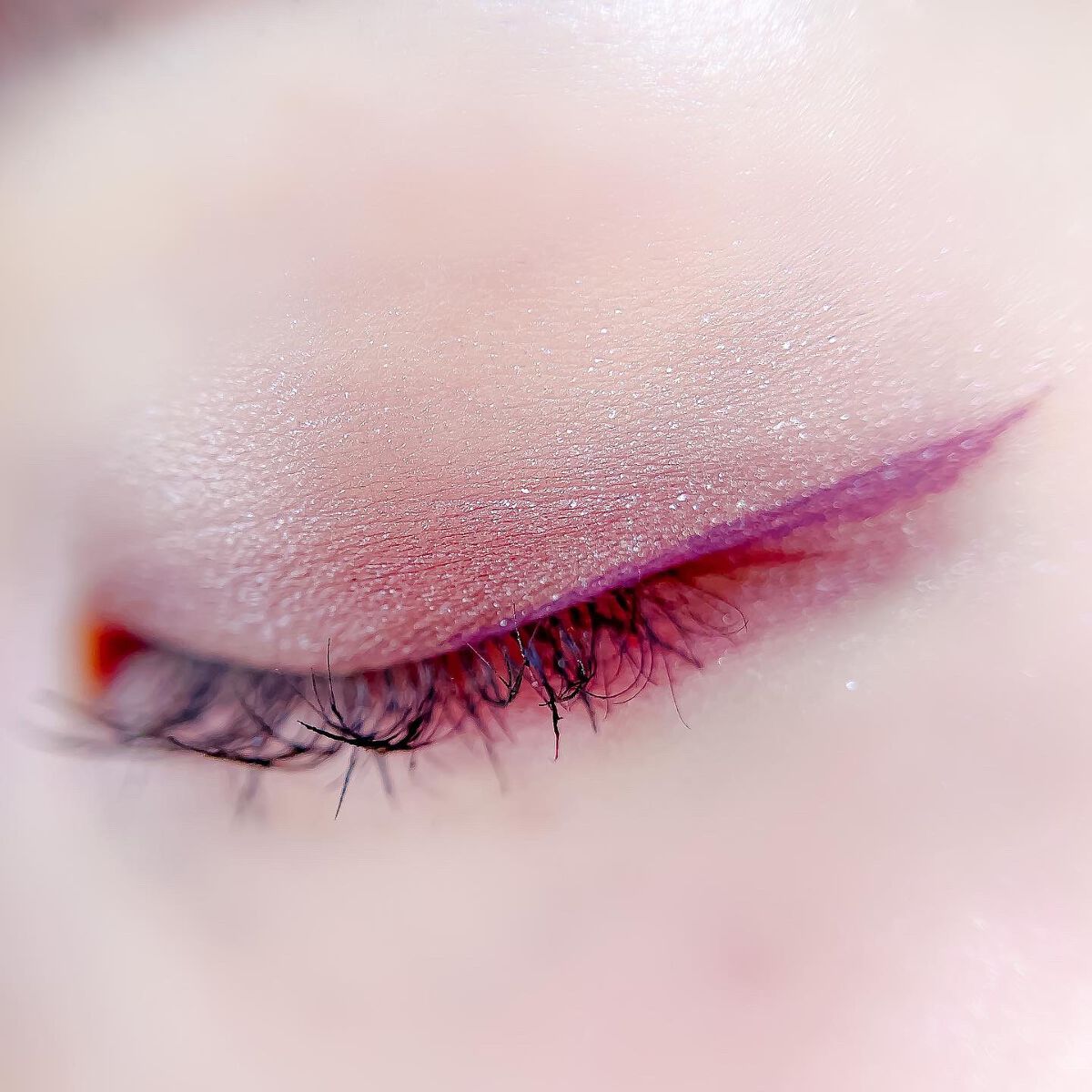 ベースに右上、目頭から黒目上に真ん中、黒目〜目尻に右下を、左上を目頭にくの字に塗ってもらいました✨ ピンクサクラよりもクールな感じで、目で見た色より私の肌では紫っぽく発色しました😍 上2つはラメはぎっしりでときめく💓 ブラウンメイクがとても苦手だけれどこれならブラウンメイク出来そう👌(かなり紫寄りですが) くすみ感は強いので苦手な方は厳しいかも…(特に真ん中) クールな印象になるので大人顔さん向けor大人顔になりたい方向けのイメージです✨