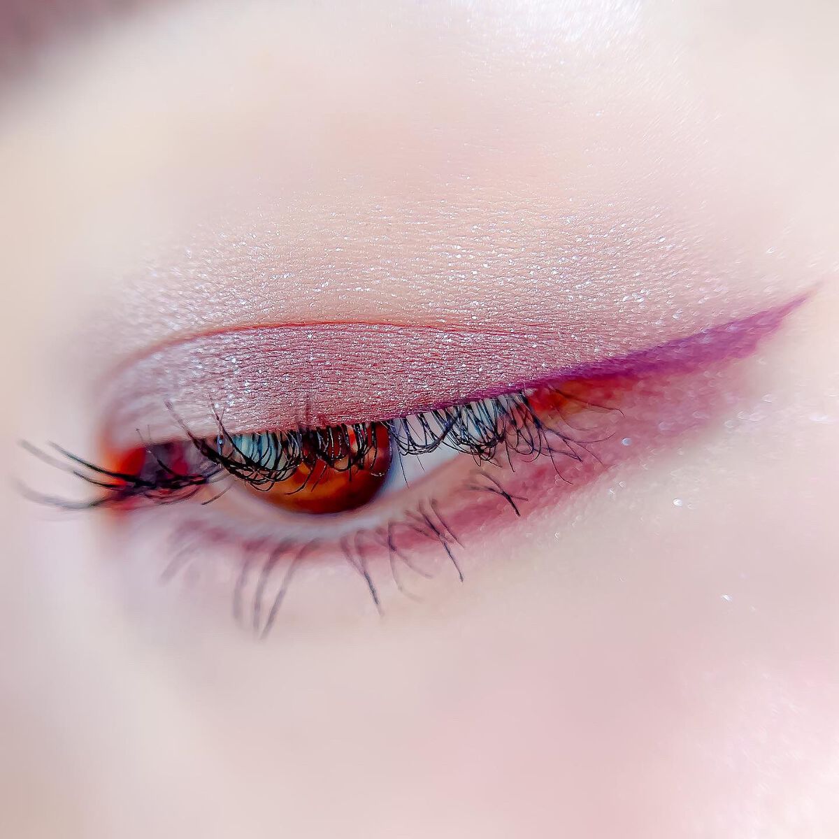 ピンクにグレージュも良いですね👌💗 今日は可愛らしい感じにしてみました💕 上下瞼黒目〜目頭側にラメを塗ってキラキラさせております🤩 目尻はマットのピンクを濃いめに重ねて💗 グレージュのアイライナーと相性◎