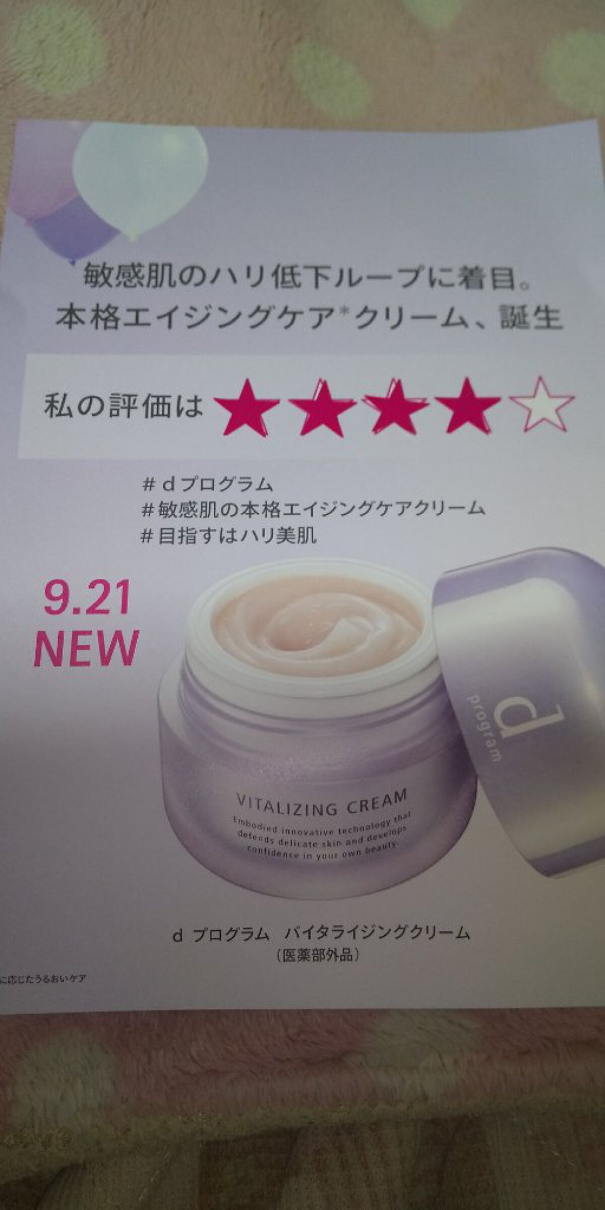 朝の保湿にピッタリなクリーム🌞dプログラムバイタライジングクリーム敏感肌特有のハリ低下の要因にアプローチ。肌にうるおいを届け、明るく、ふっくらとしたハリ肌へ導く薬用エイジングケア*クリームです。なめらかにやさしく広がるクリームがしっかりうるお...