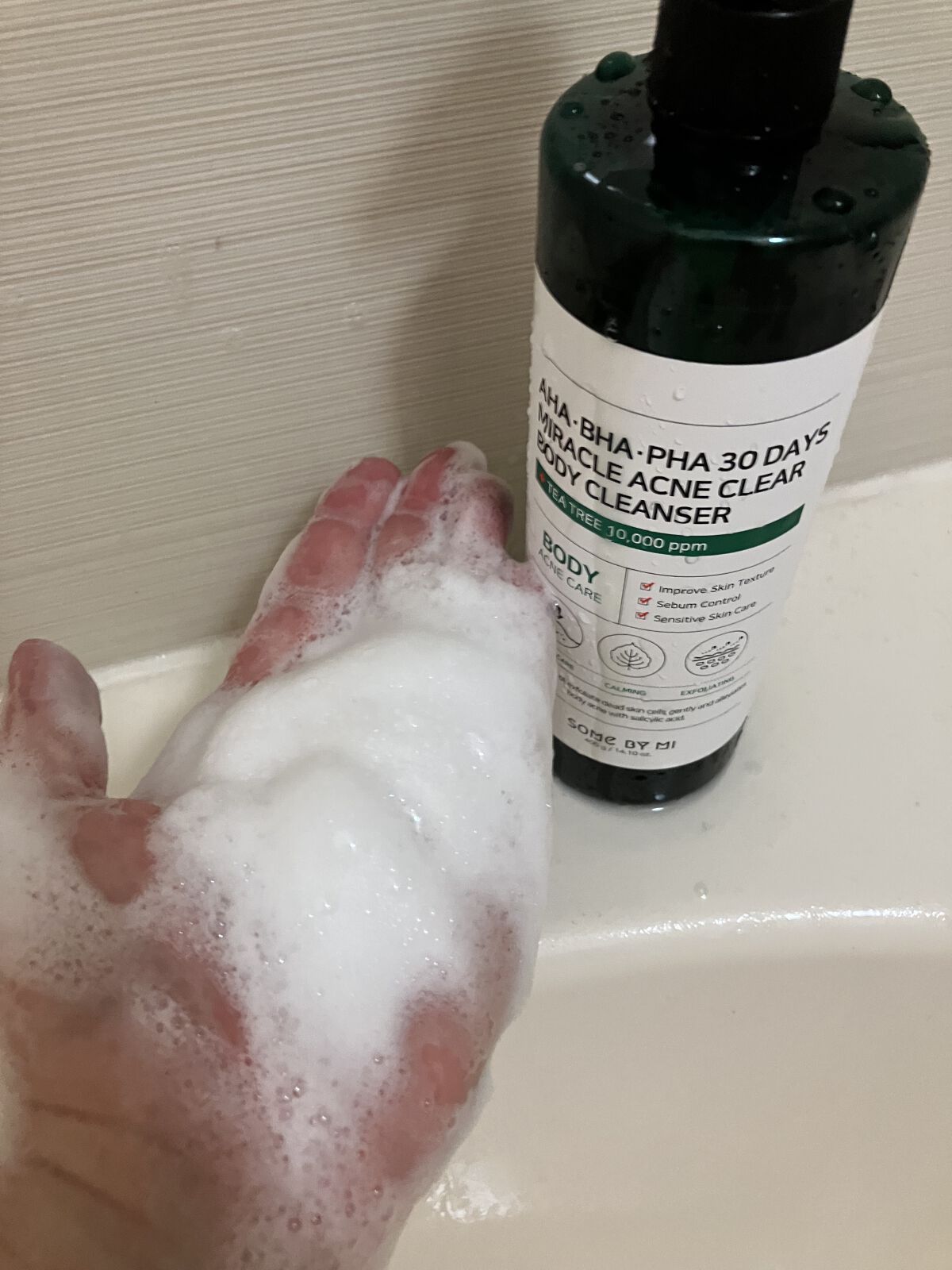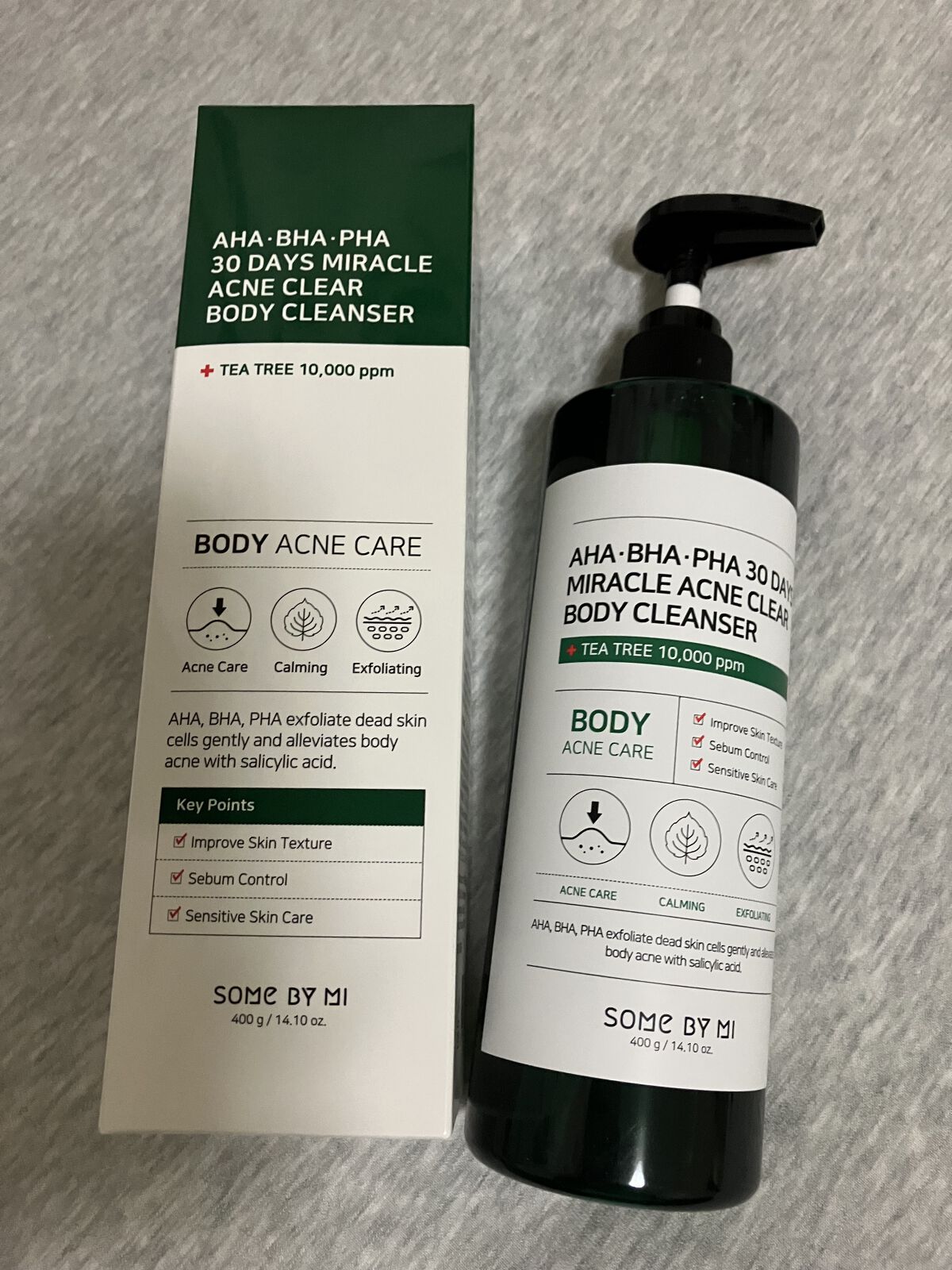 SOME BY MIのボディーケアシリーズを初めて使ってみました✨ ニキビ肌改善機能性クレンザー 機能成分が背中等のニキビができやすい肌を改善✨ 洗い上がりはサッパリ爽快な仕上がり✨ 余分な皮脂や角質を取り除いてくれているようで、使用後は肌触りがいつもよりツルツルしているように感じます✨