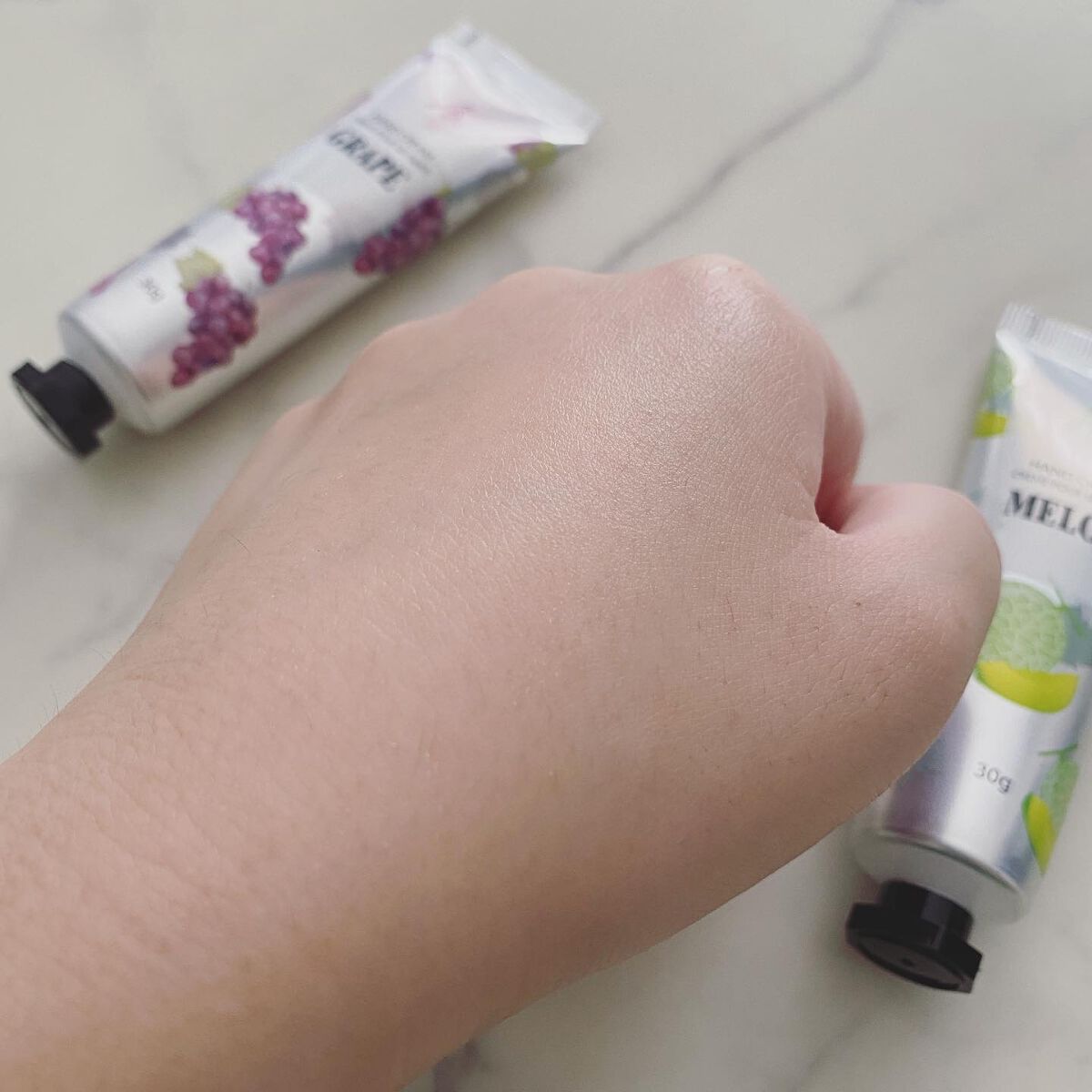 ぷるぷるのシルキーなクリーム、馴染ませると水分が出てきてするする広がる…! すぐにベタ付きがなくなって、スマホやパソコンをさわれるのも良い♪ ふんわりイチゴの香りも楽しめた🍓 プチプラだったのに凄く良かった🥹