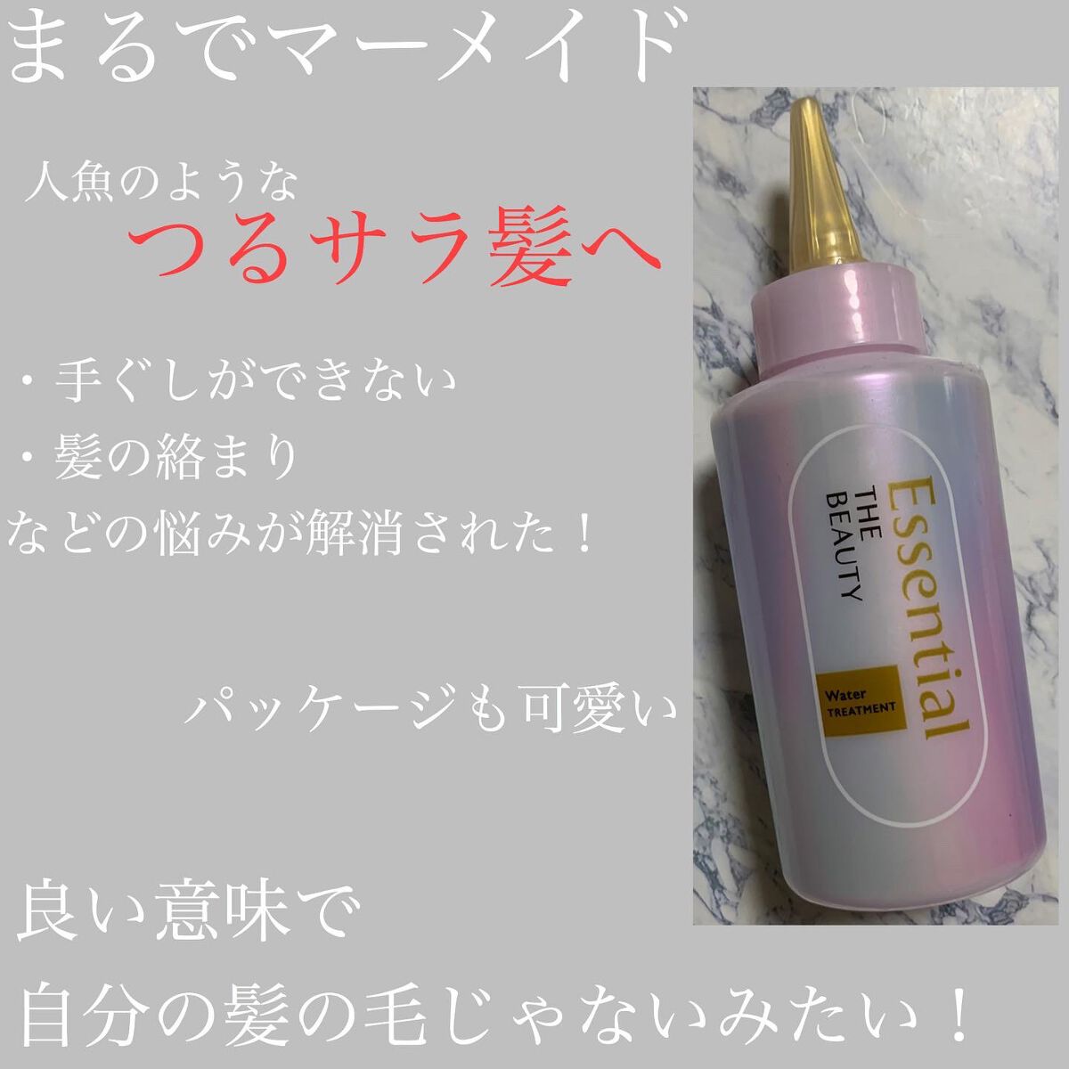 髪のキメ美容ウォータートリートメントは洗い流さないトリートメントで、美容ウォーターが髪に浸透し、持続型ウォーターヴェールでつるサラ髪に仕上げます サラサラしたお水のようにサッパリしたテクスチャーでオイルのようなペッタリ感がなく軽いつけ心地だよ。 ブリーチによるダメージで髪の毛流れが悪く広がりやすい髪が整って、まとまりやすくなったよ!
