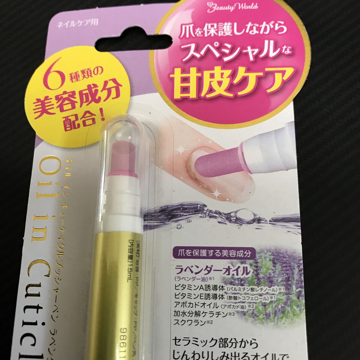 ビューティーワールドオイルインキューティクルプッシャーペン今まではキューティクルリムーバーを塗ってキューティクルプッシャーを使っていましたが、これ1つで簡単に甘皮処理ができました。ラベンダーの香りも強すぎず、爪の乾燥も気になりませんでした。ま...