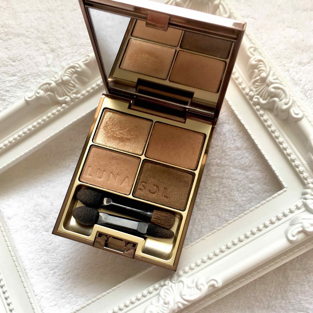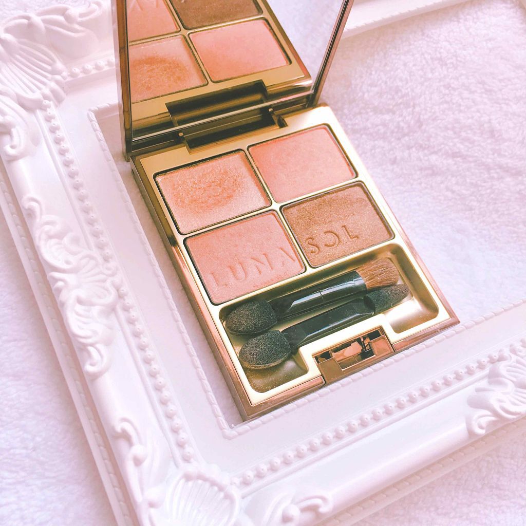 LUNASOLのアイシャドウパレットです❁⃘*.゚ ベージュ系の色味の中にオレンジが入っていて目元が暗くなりすぎず使いやすいです♪ 全てパール質感になっていて綺麗なツヤ感も出ます。 ブラウンすぎると目元が重たく見えるのでこのオレンジが入っているカラーだと明るく見えてよかったです!