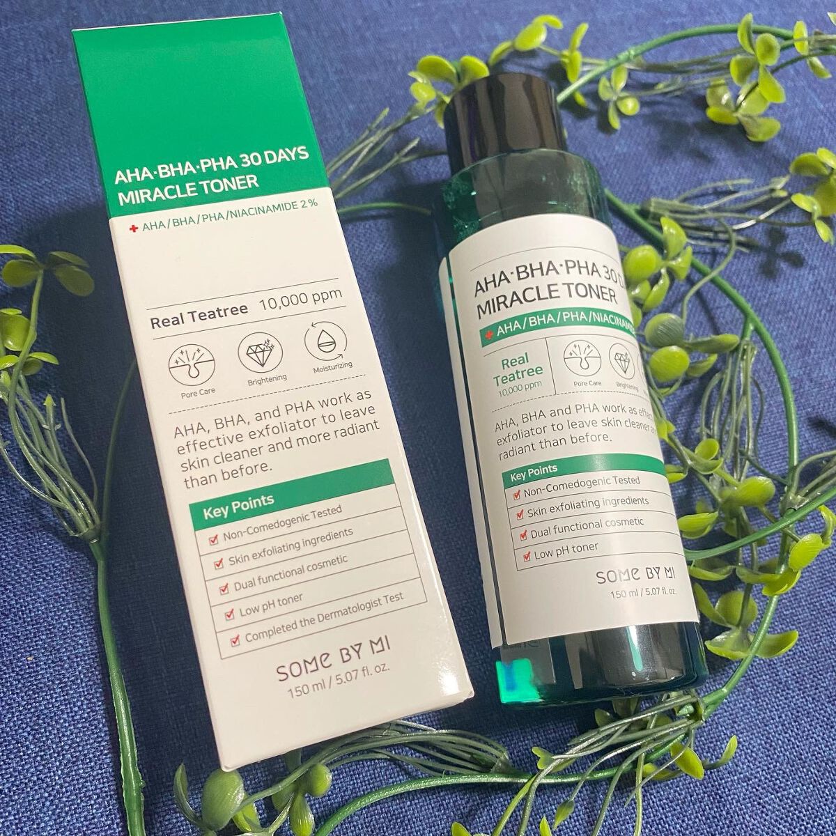 日本でも人気の高い韓国スキンケアブランド「SOME BY MI」💚 TikTokバズアイテムとして超人気の化粧ノリ抜群トナー🌸 サラサラ系のテクスチャー💫 肌にスッとなじみ、ベタつきもなし🙆🏻♀️ 角質ケアとしても活躍💎 朝はコットンにたっぷり含ませて拭き取り用としても使っています🌱